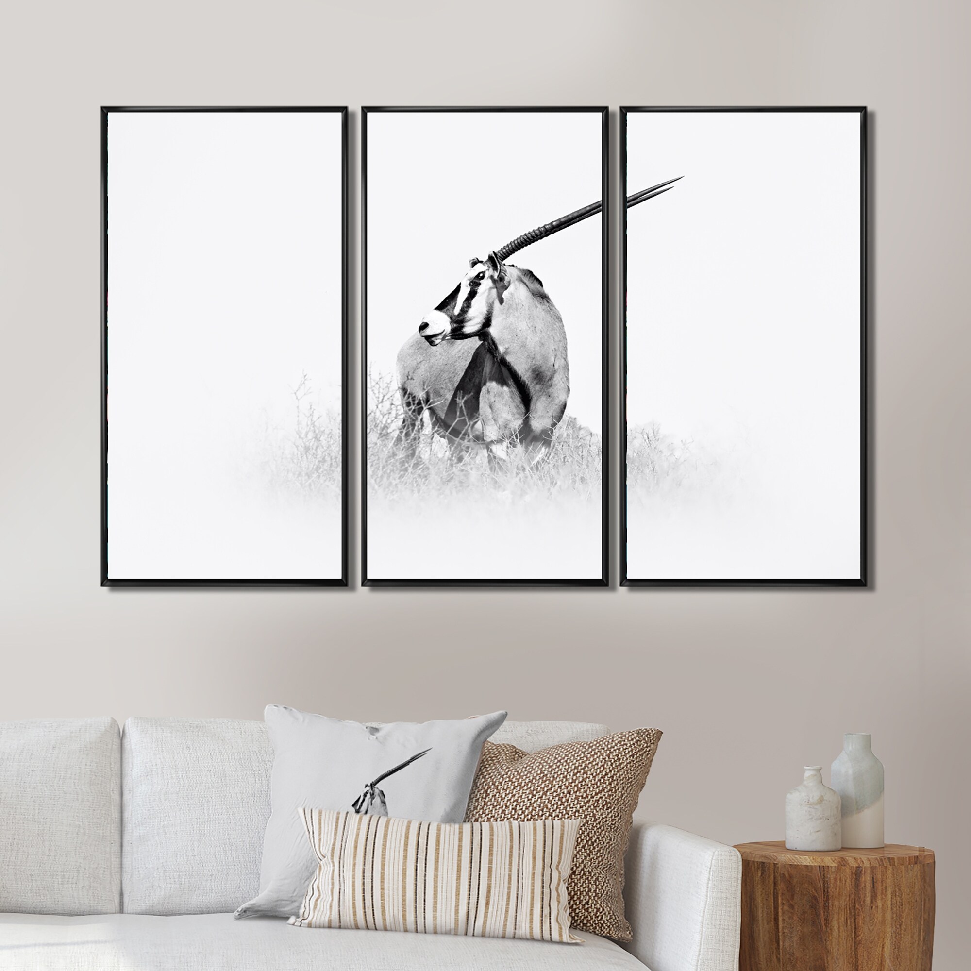 Designart "African Gemsbok in Black And White" Traditional Framed Wall Art Set of 3 - 4 Colors of Frames