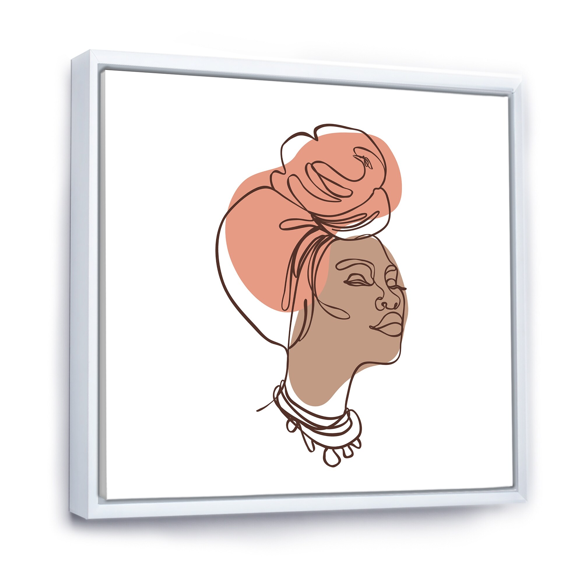 Designart "One Line Portrait of African American Woman IV" Modern Framed Canvas Wall Art Print