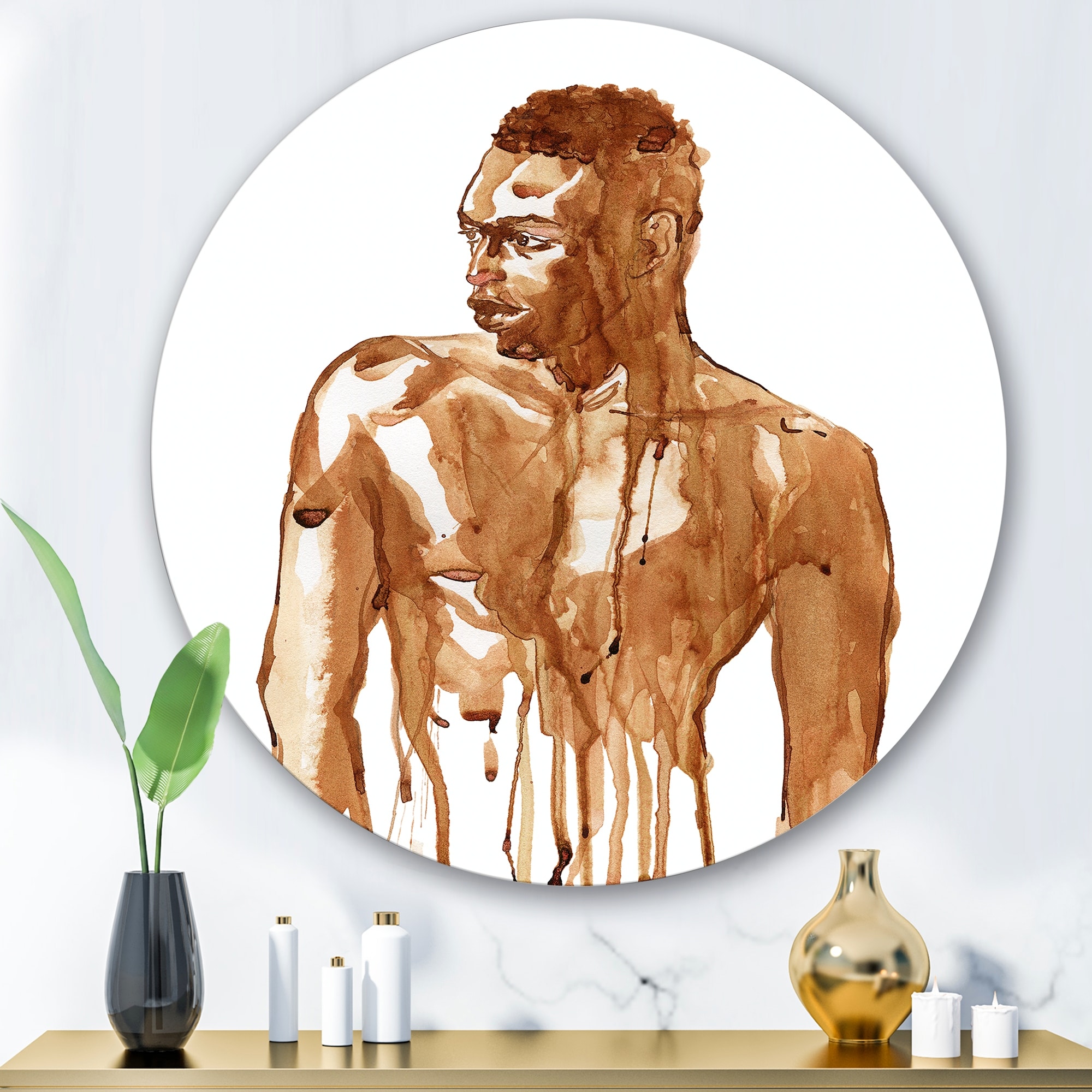 Designart 'Handsome African Man Portrait on White II' Modern Metal Circle Wall Art