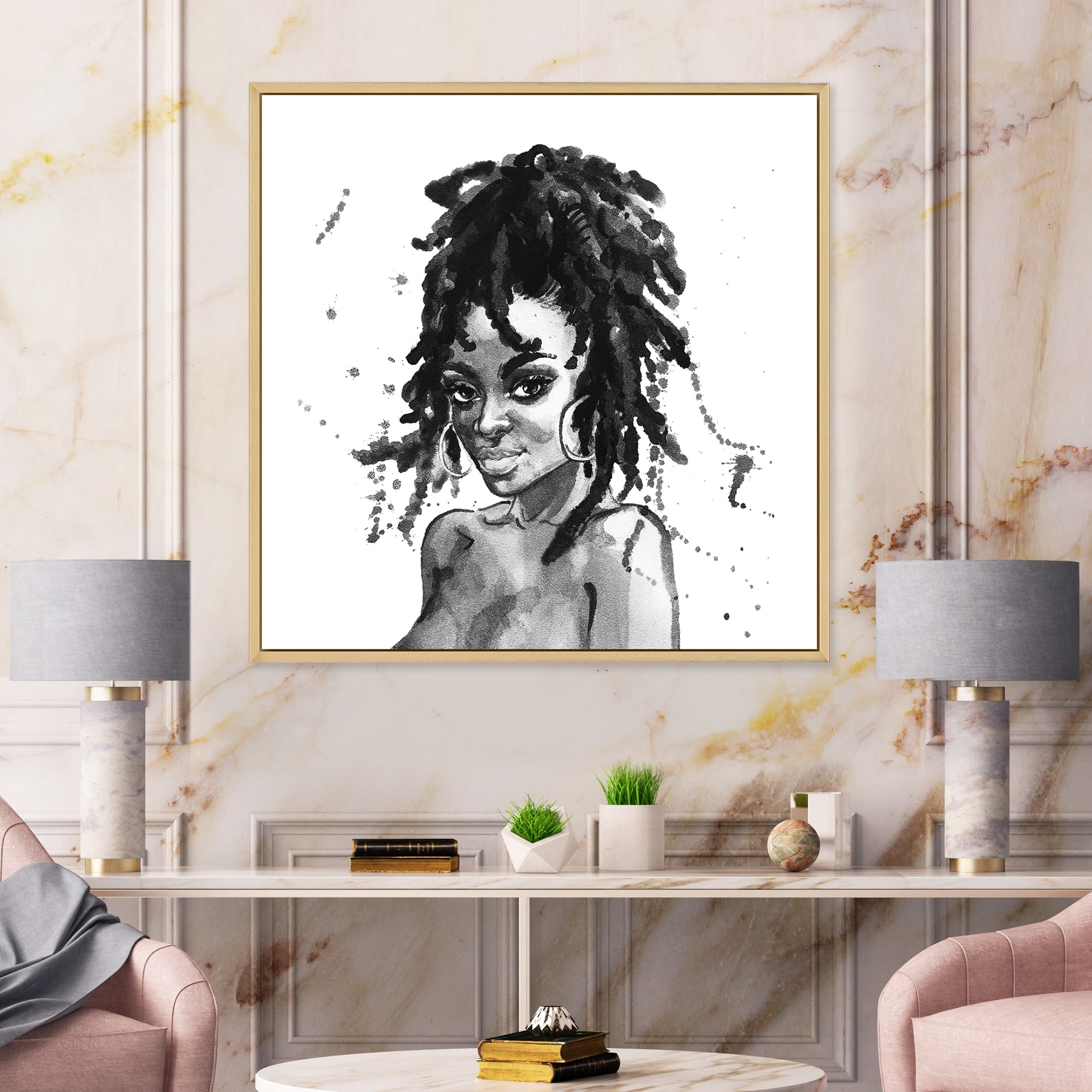 Designart "Portrait of African American Woman VII" Modern Framed Canvas Wall Art Print