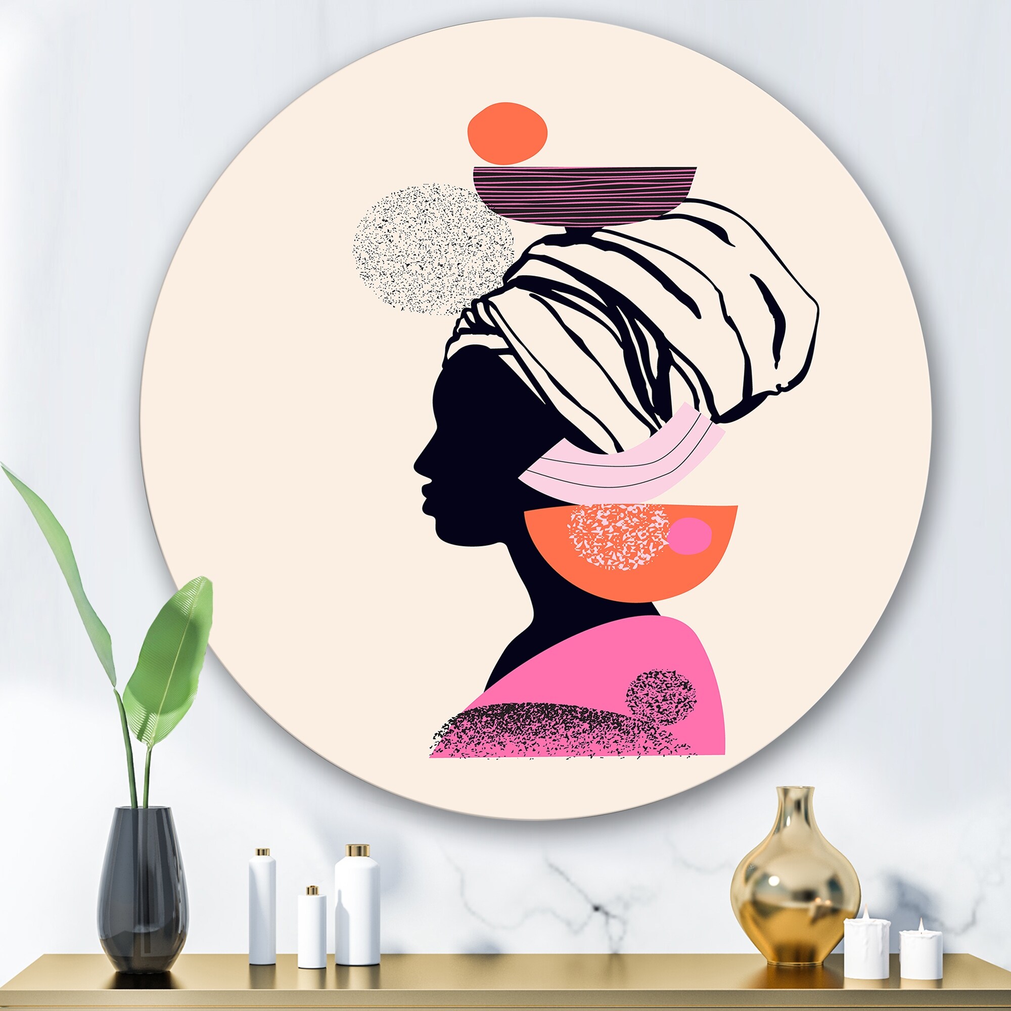 Designart 'Ethnic Portrait of African American Woman' Modern Metal Circle Wall Art