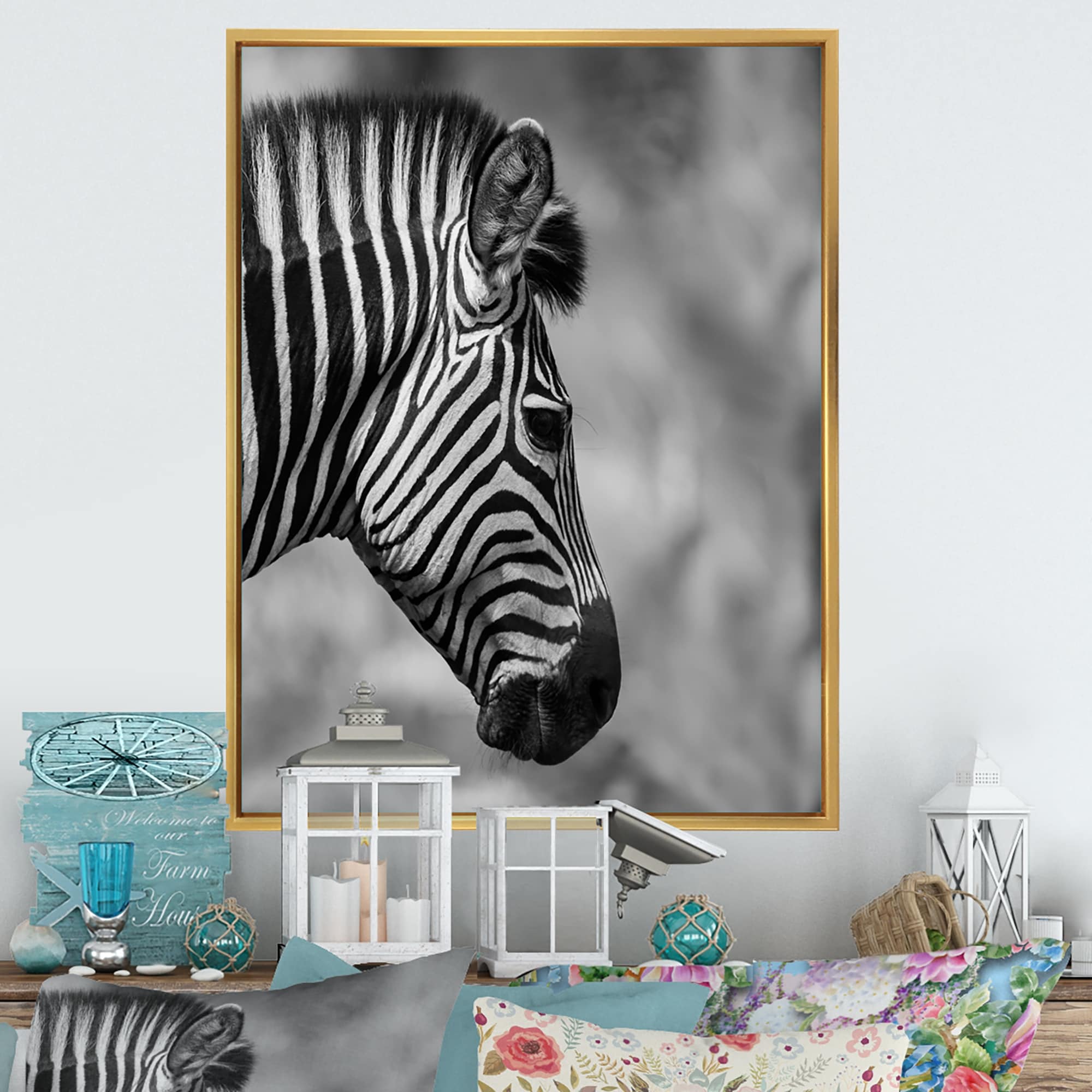 Designart "African Zebra Head in Black And White" Traditional Framed Canvas artwork