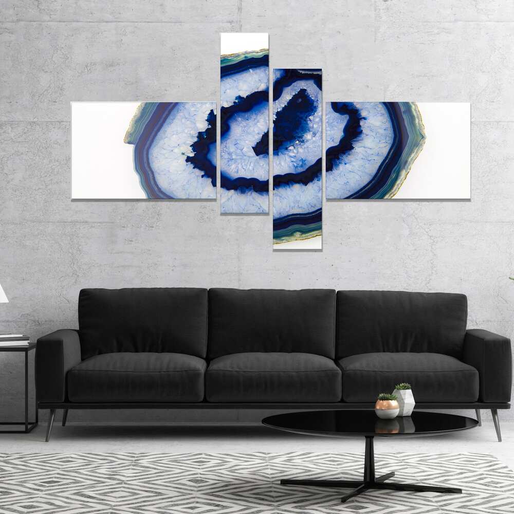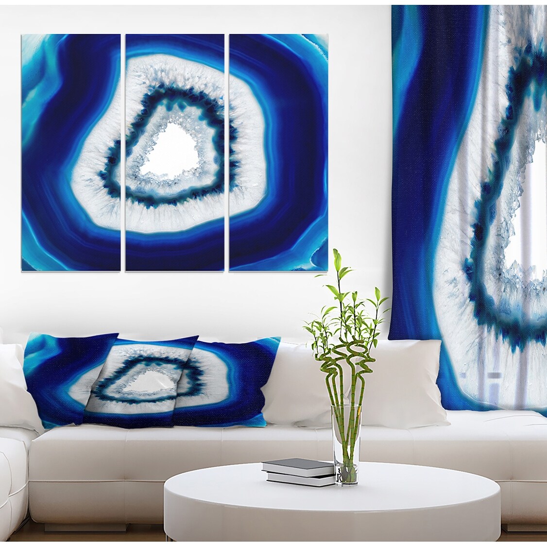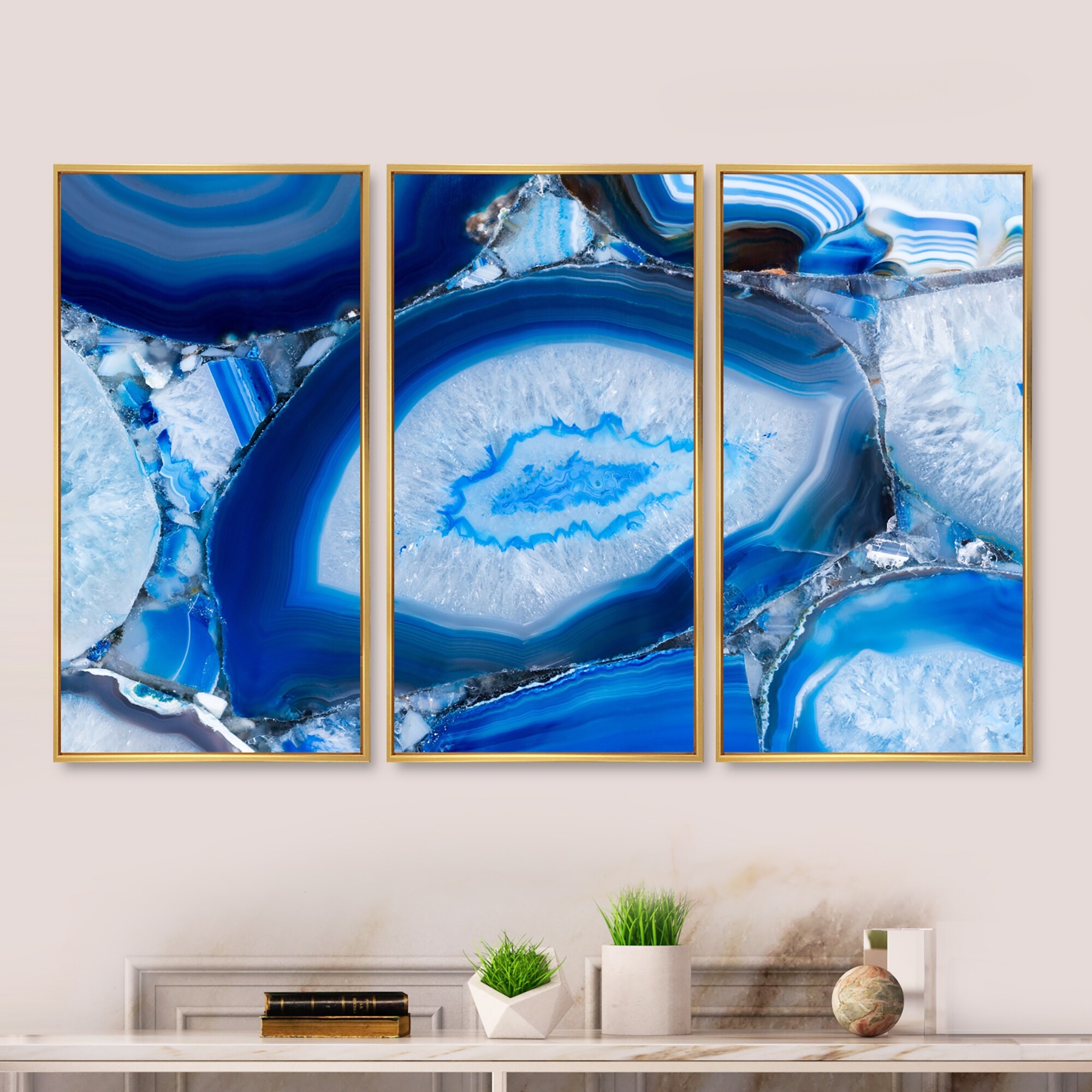 Designart "Slice of blue agate crystal'Stone Photographic on Wrapped Canvas set - 36x28 - 3 Panels