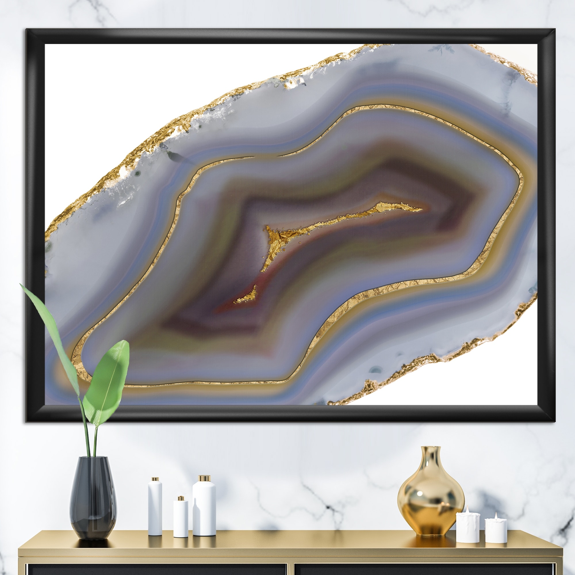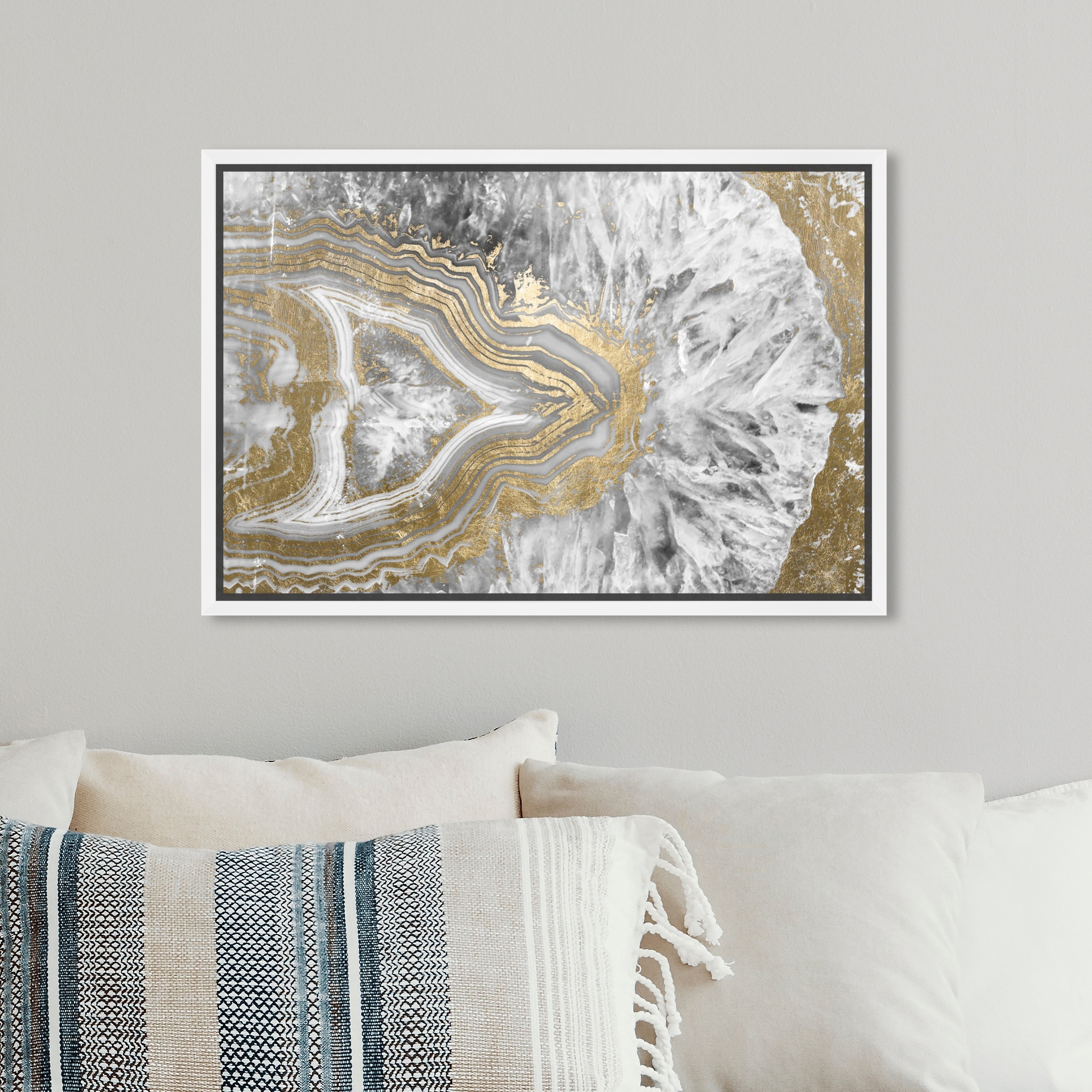 Oliver Gal Abstract Wall Art Framed Canvas Prints 'Agate Geode Crystal' Crystals - Gold, White