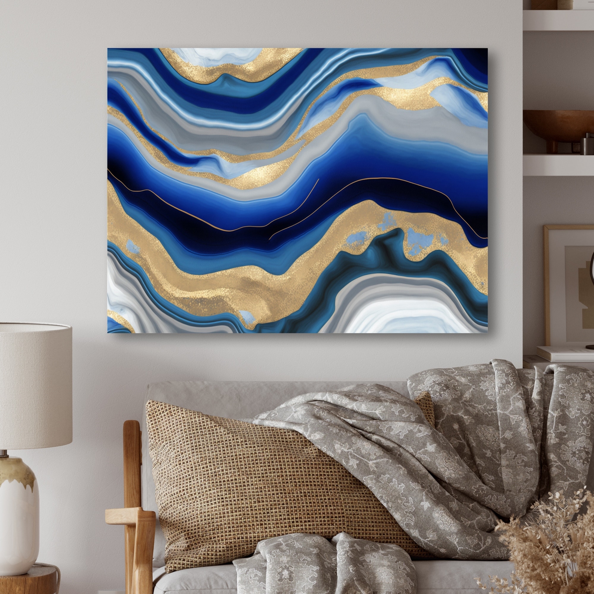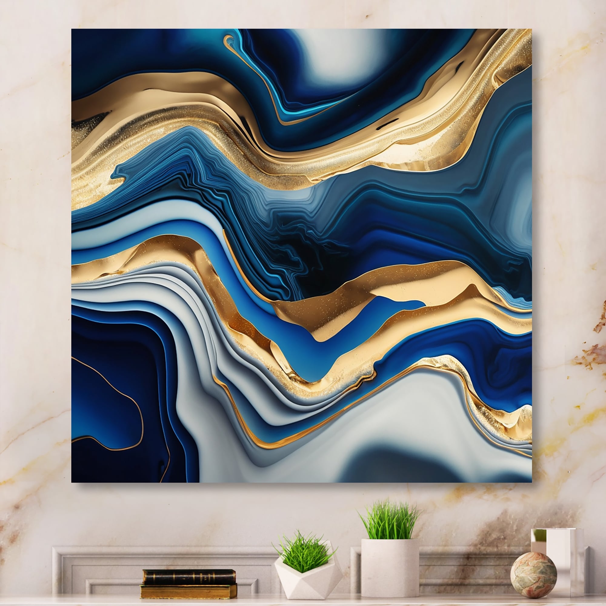 Designart 'Vibrant Blue And Gold Agate III' Modern Canvas Wall Art