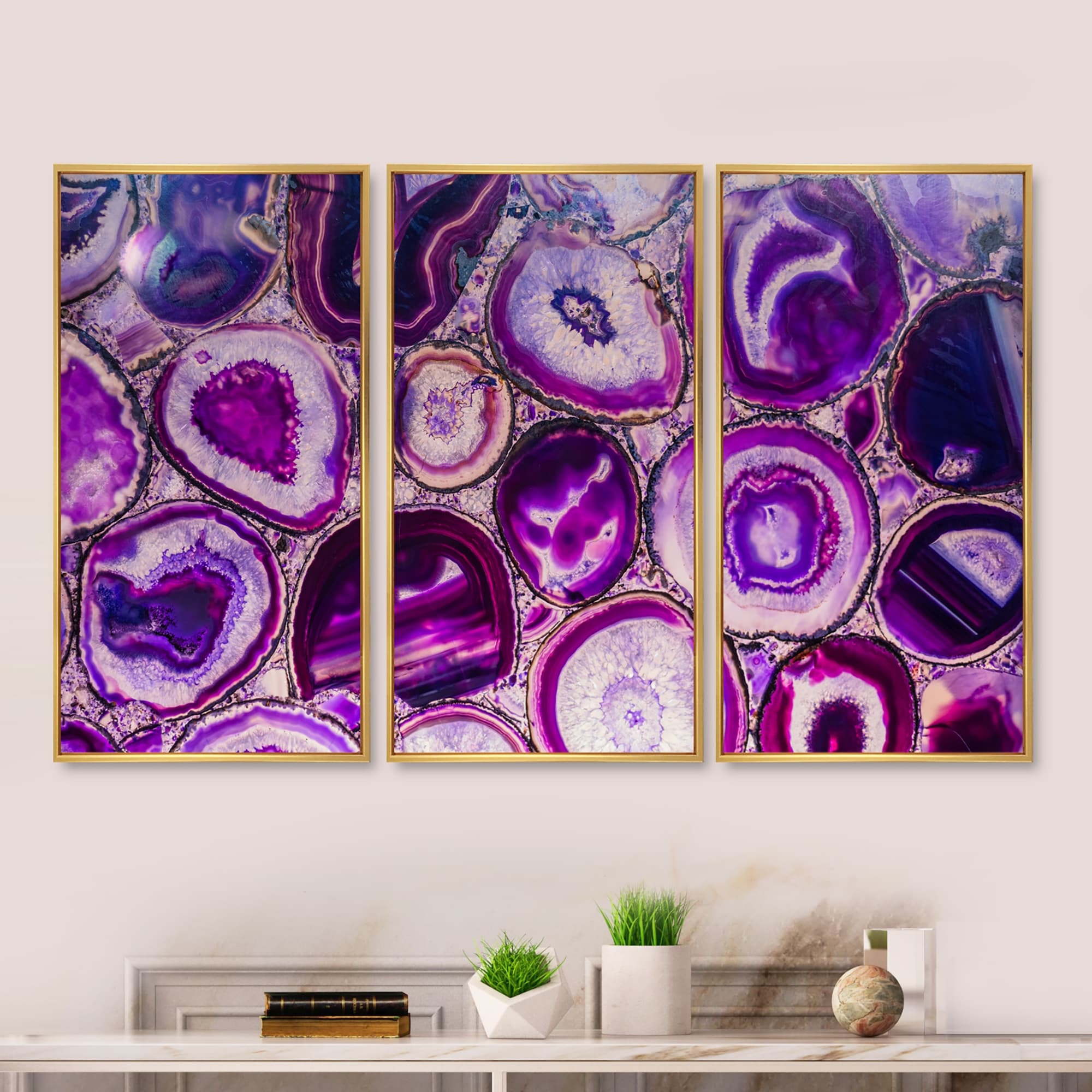 Designart "Violet Agate geode" Mid-Century Modern Framed Art Prints Set of 3 - 4 Colors of Frames