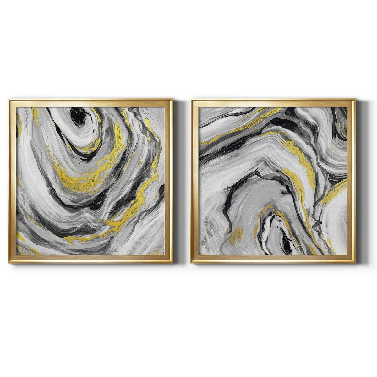 Designart "Marble Granite Agate With Touches of Gold XIV" Modern Geometric Framed Wall Decor