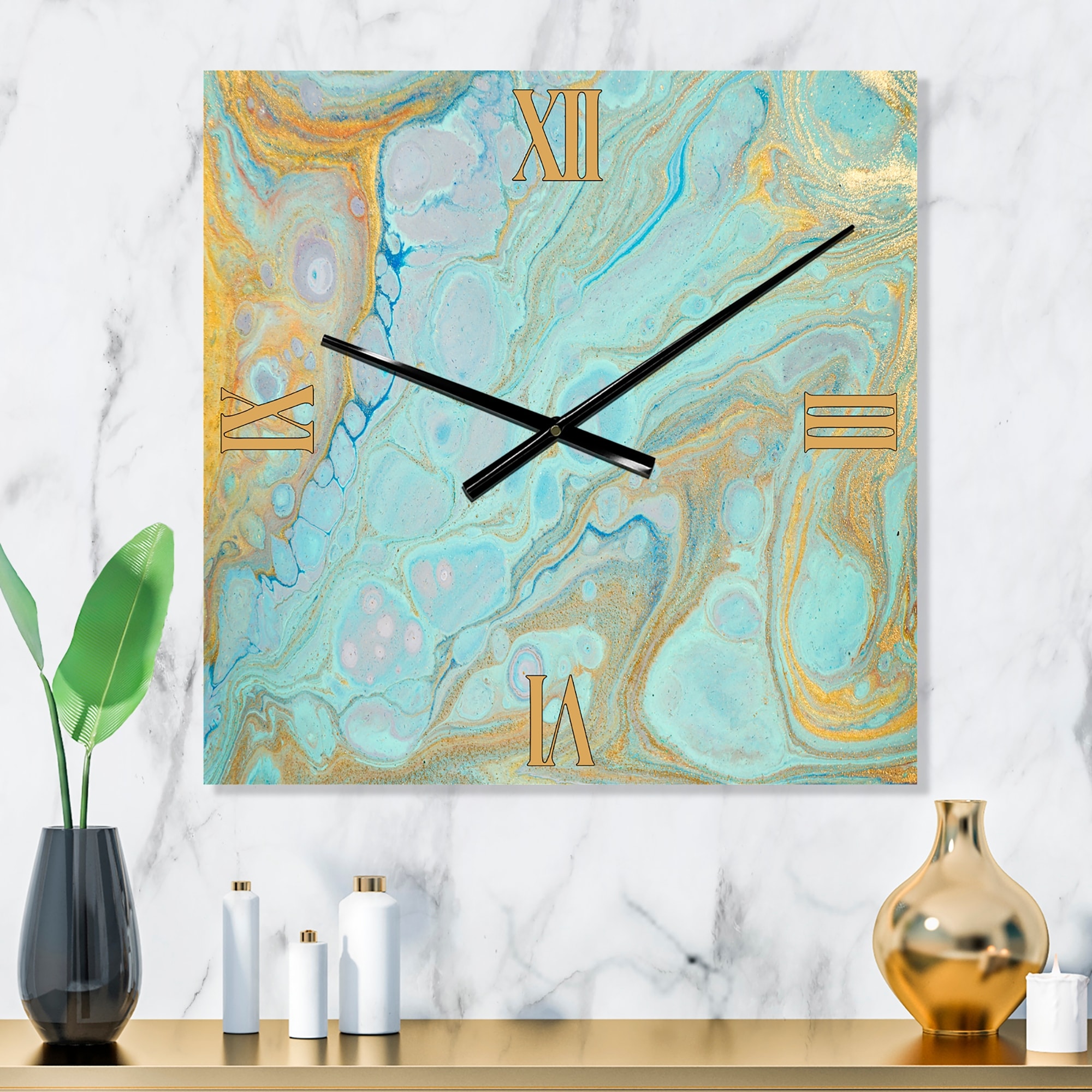 Designart 'Blue and Gold Marble Agate Ripples II' Glam Metal Wall Clock