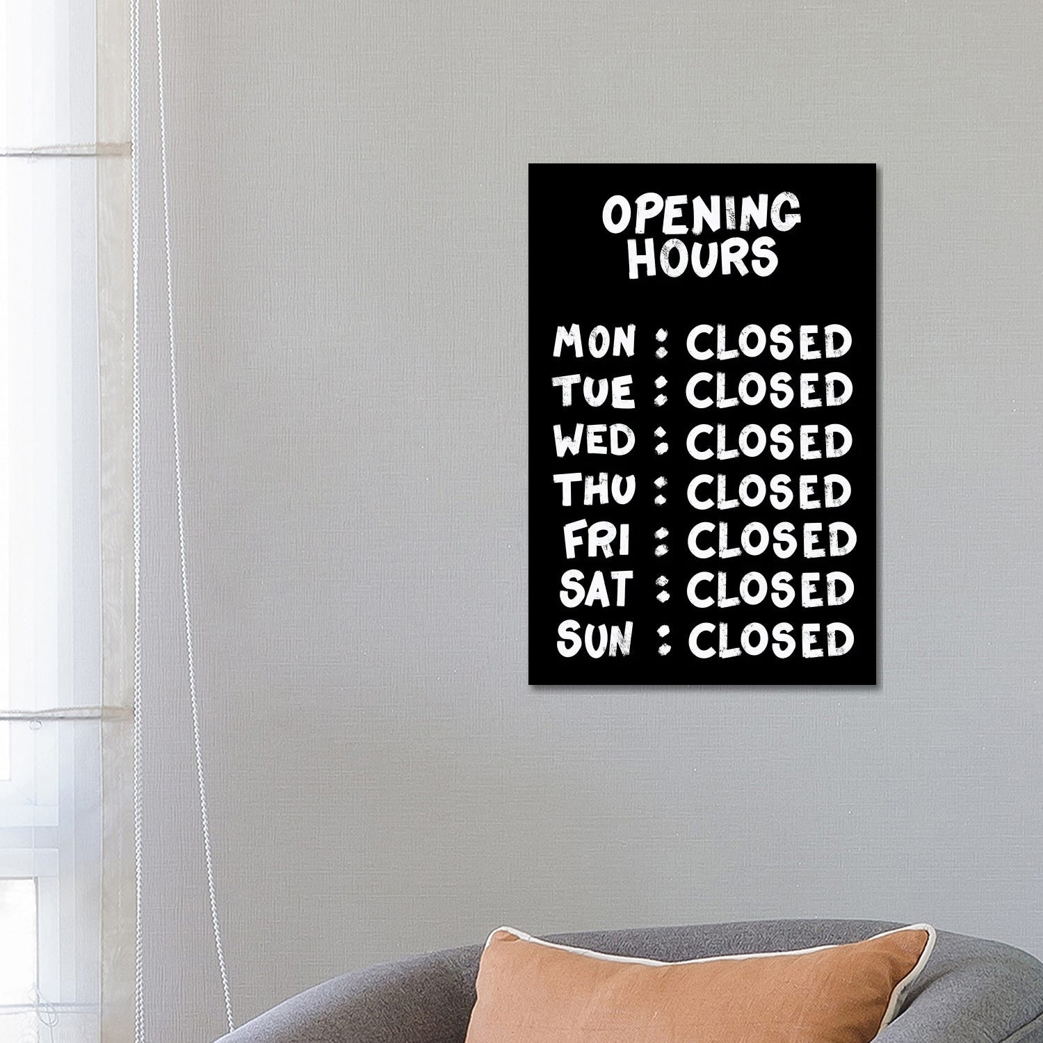 iCanvas "Opening Hours Black" by Andrew M Barlow Canvas Print