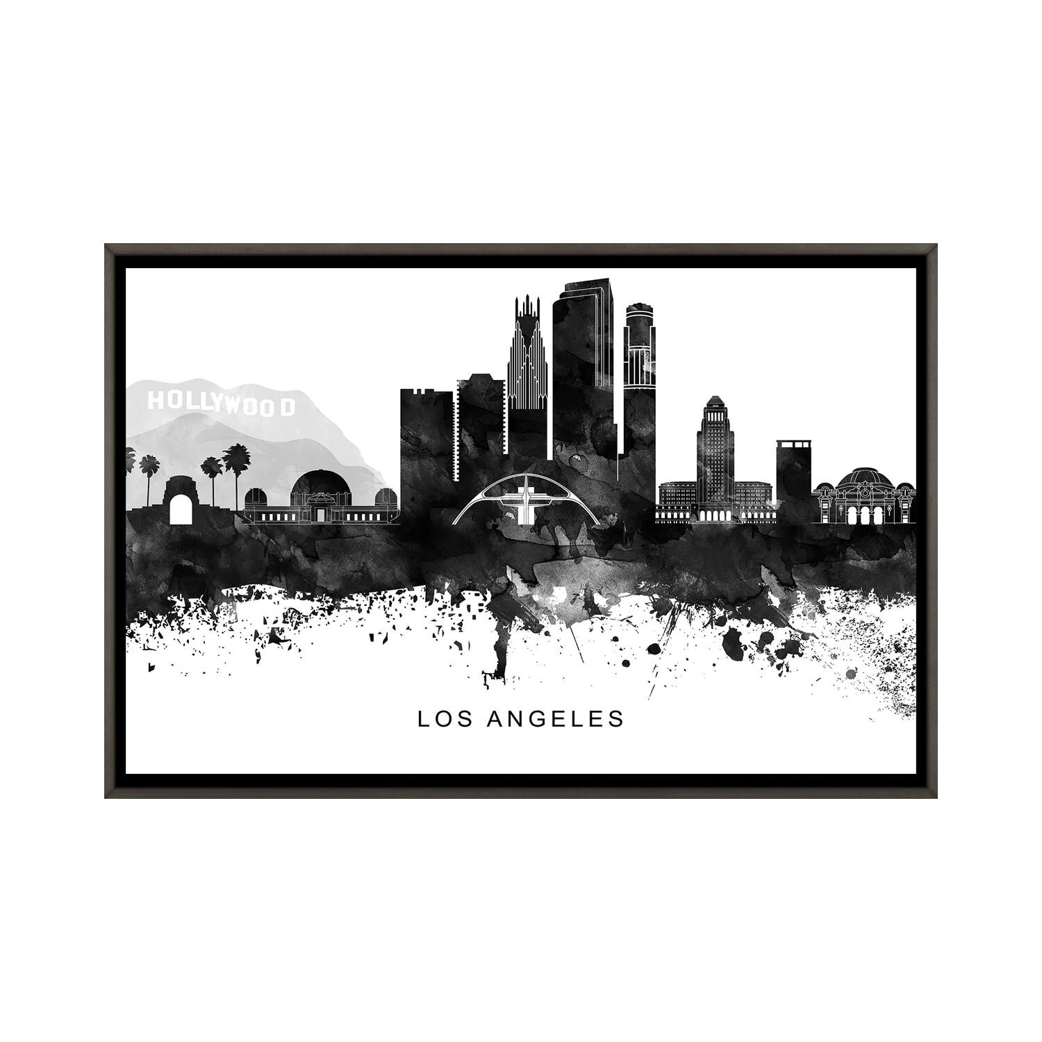 iCanvas "Los Angeles Skyline Black & White" by WallDecorAddict Framed