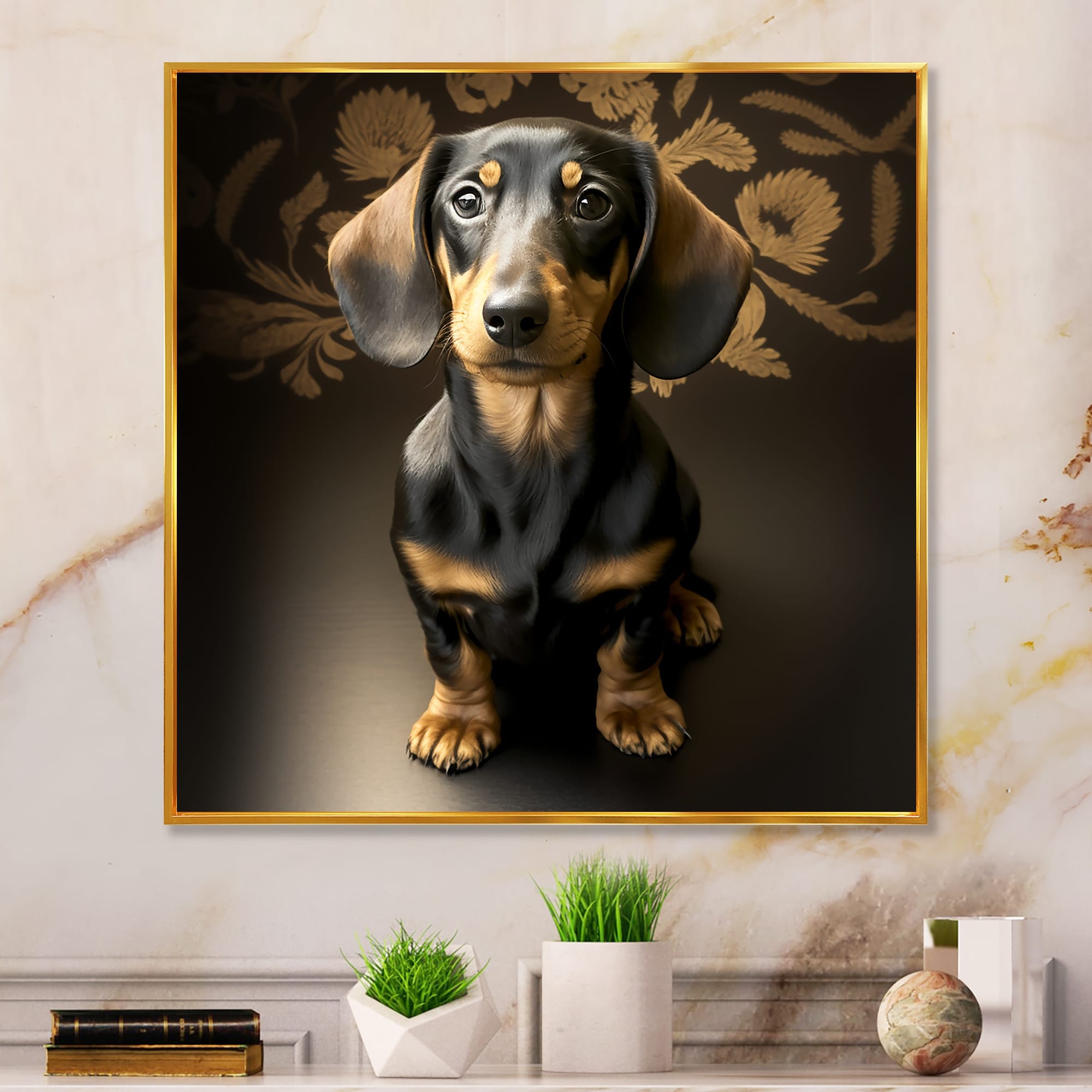 Designart "Cute Daschund Portrait" Animals Framed Canvas Wall Art Print