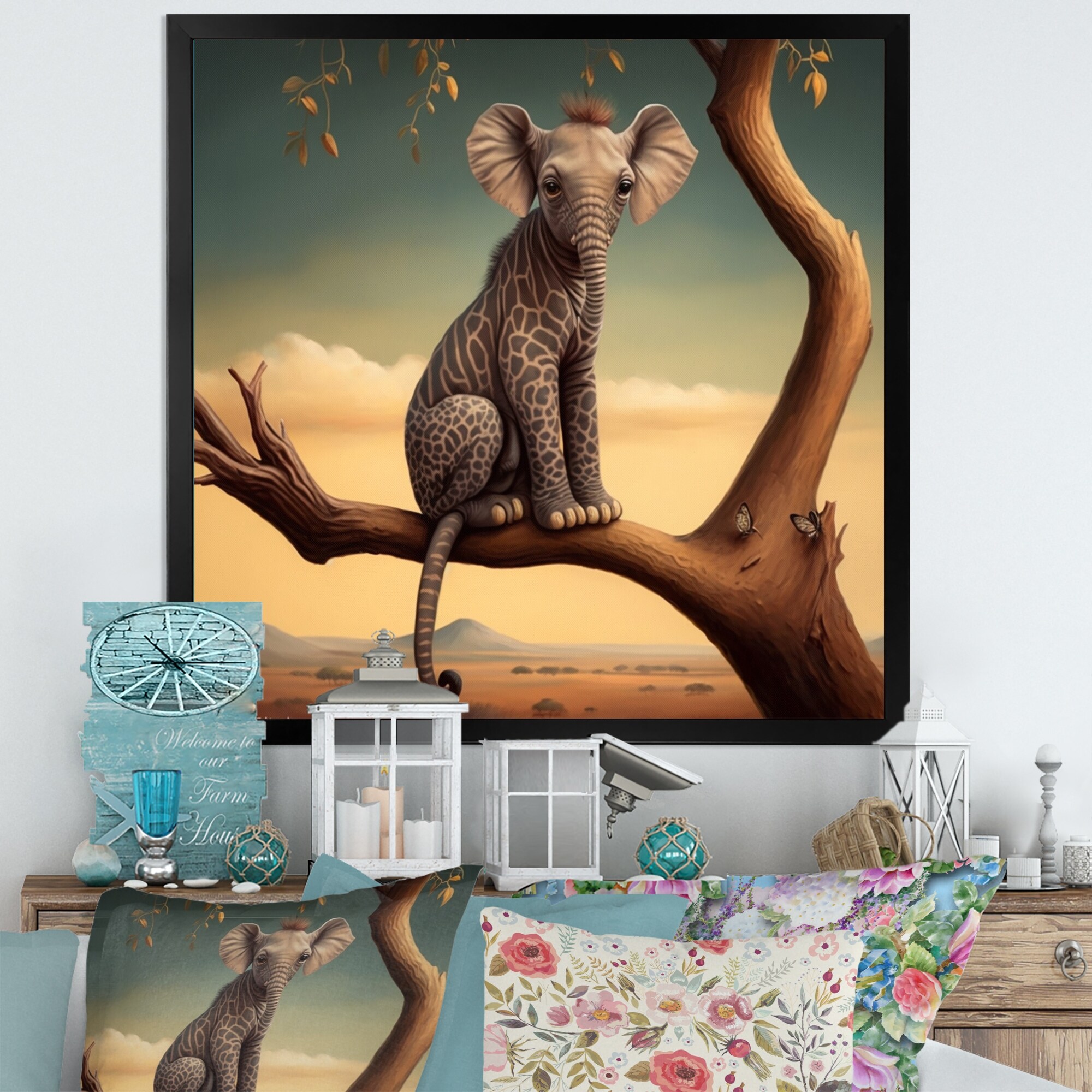 Designart "Elephant On Tree II" Animals Framed Art Print