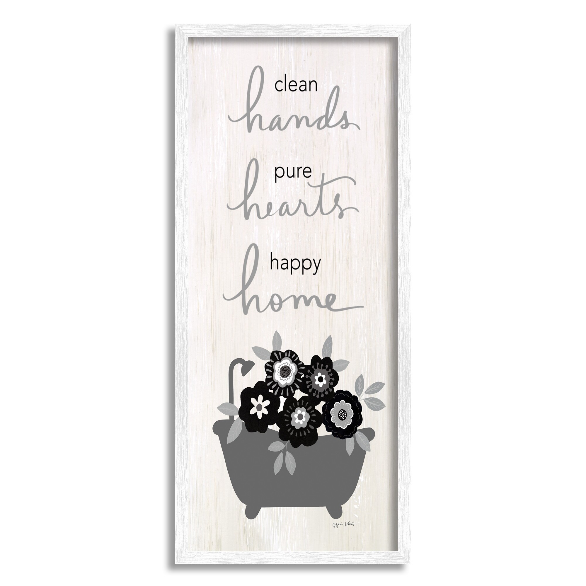 Stupell Industries Clean Hands Pure Hearts Floral Bathroom Framed Giclee Texturized Wall Art, Design By Anna LaPoint