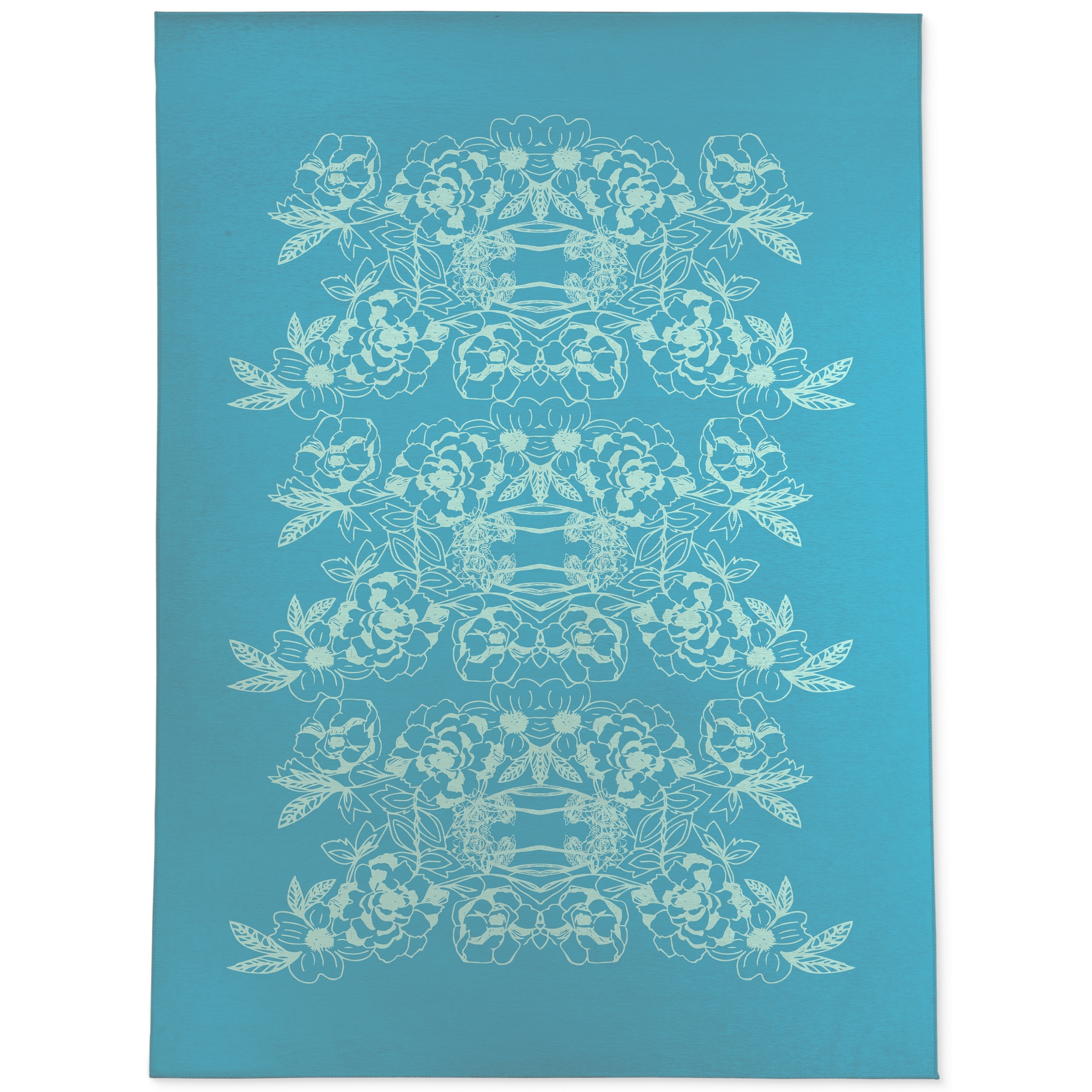 WOODBLOCK FLORAL AQUA Area Rug by Kavka Designs