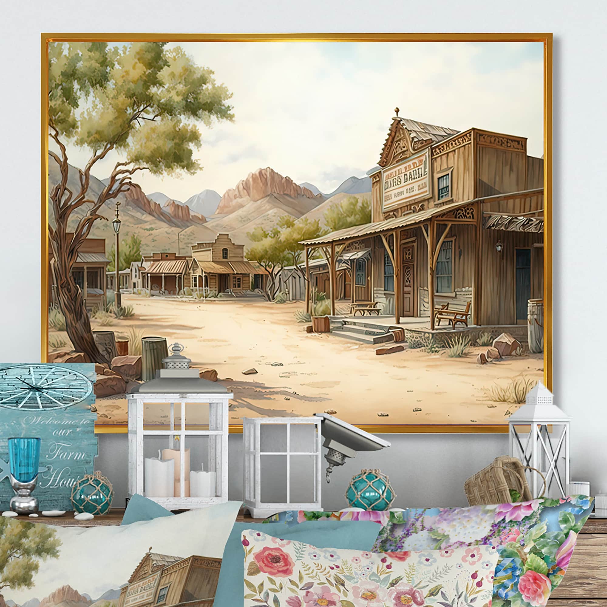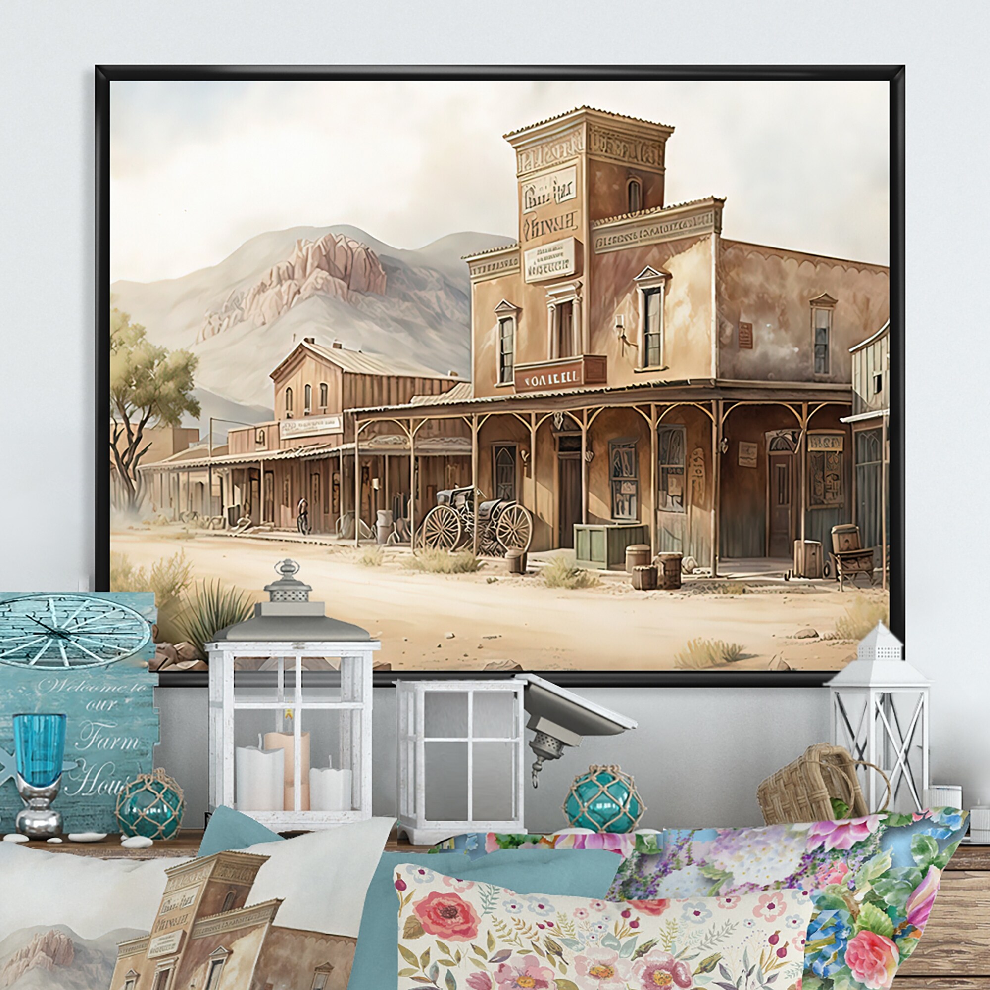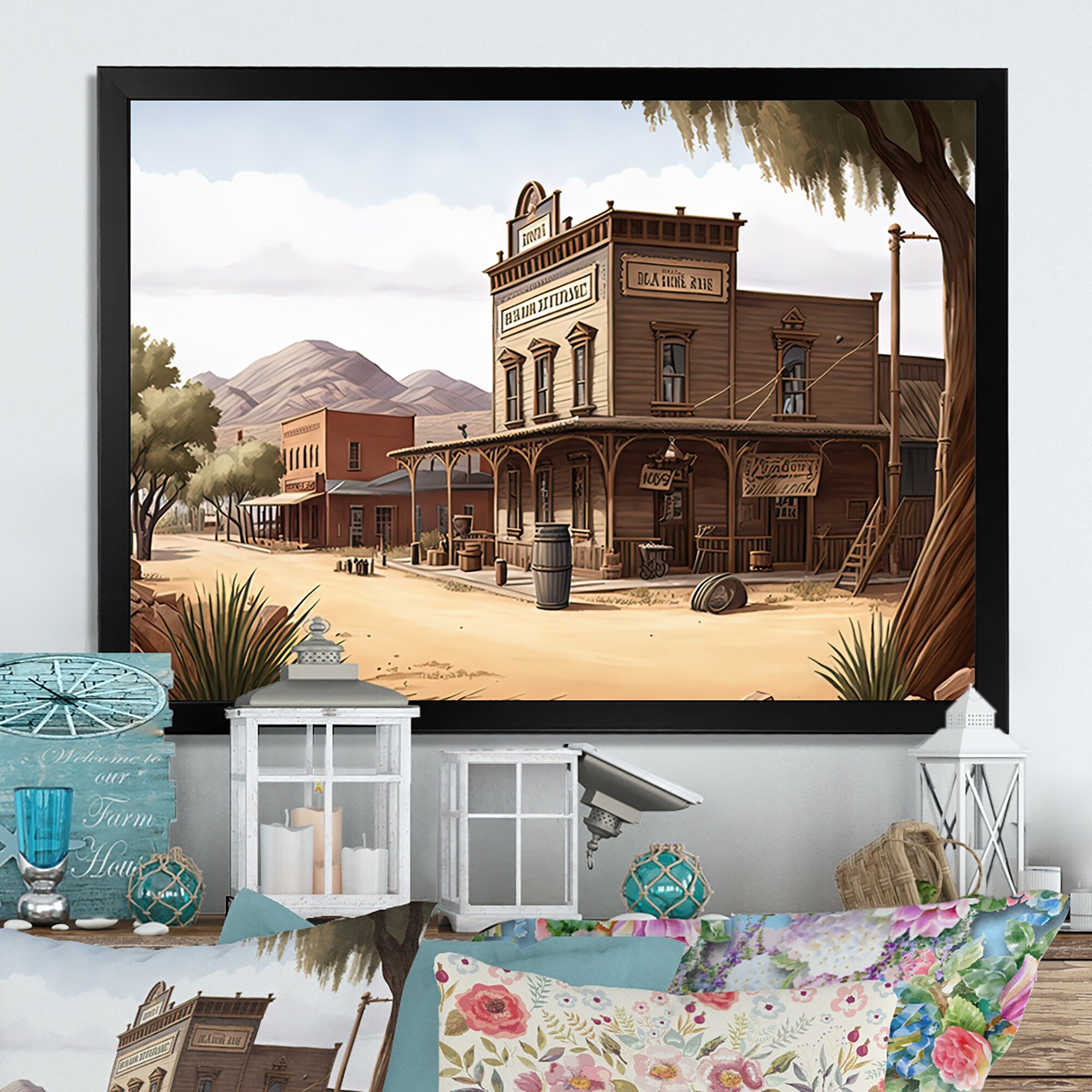 Designart "Arizona Wild West Town IV" Southwestern Framed Canvas Art Print