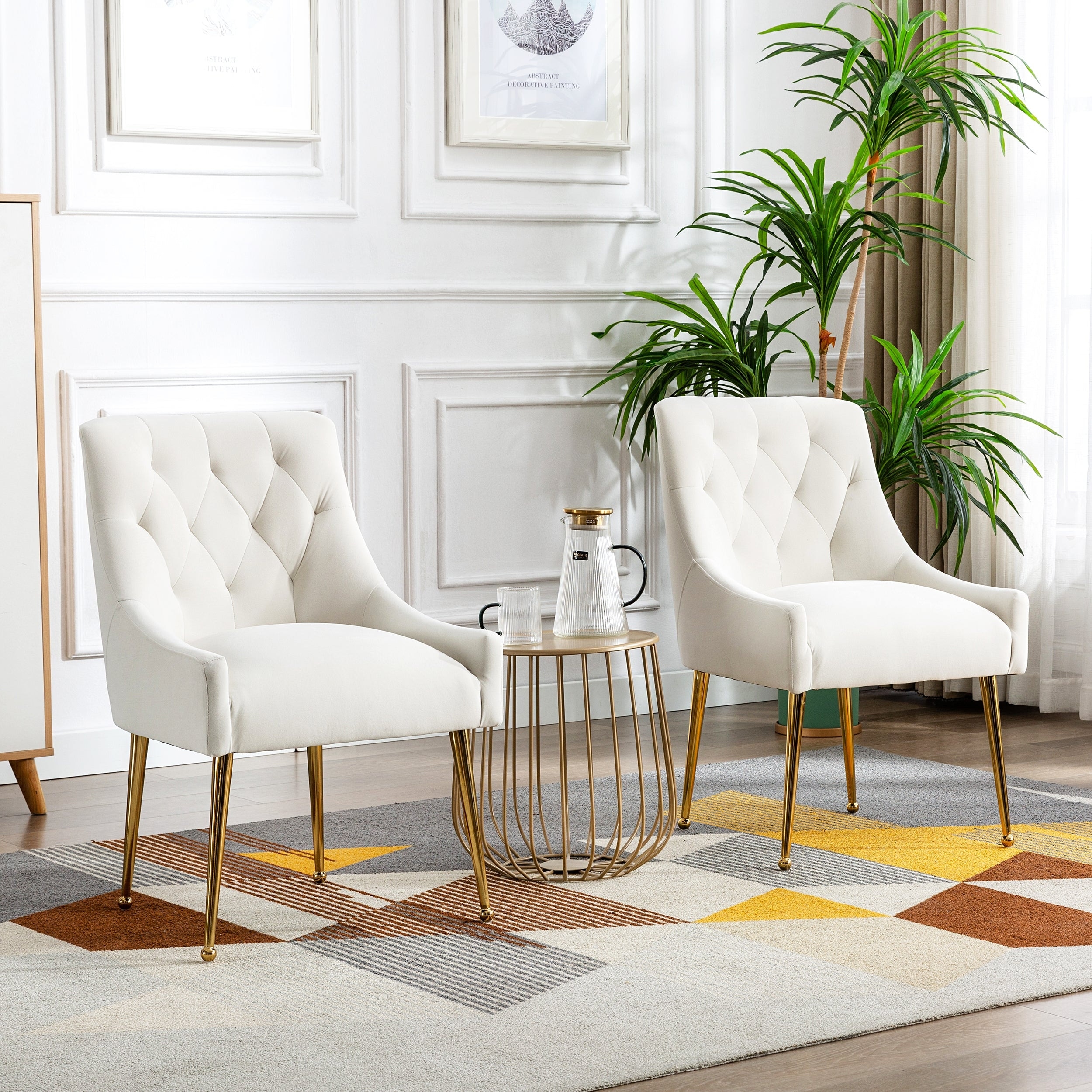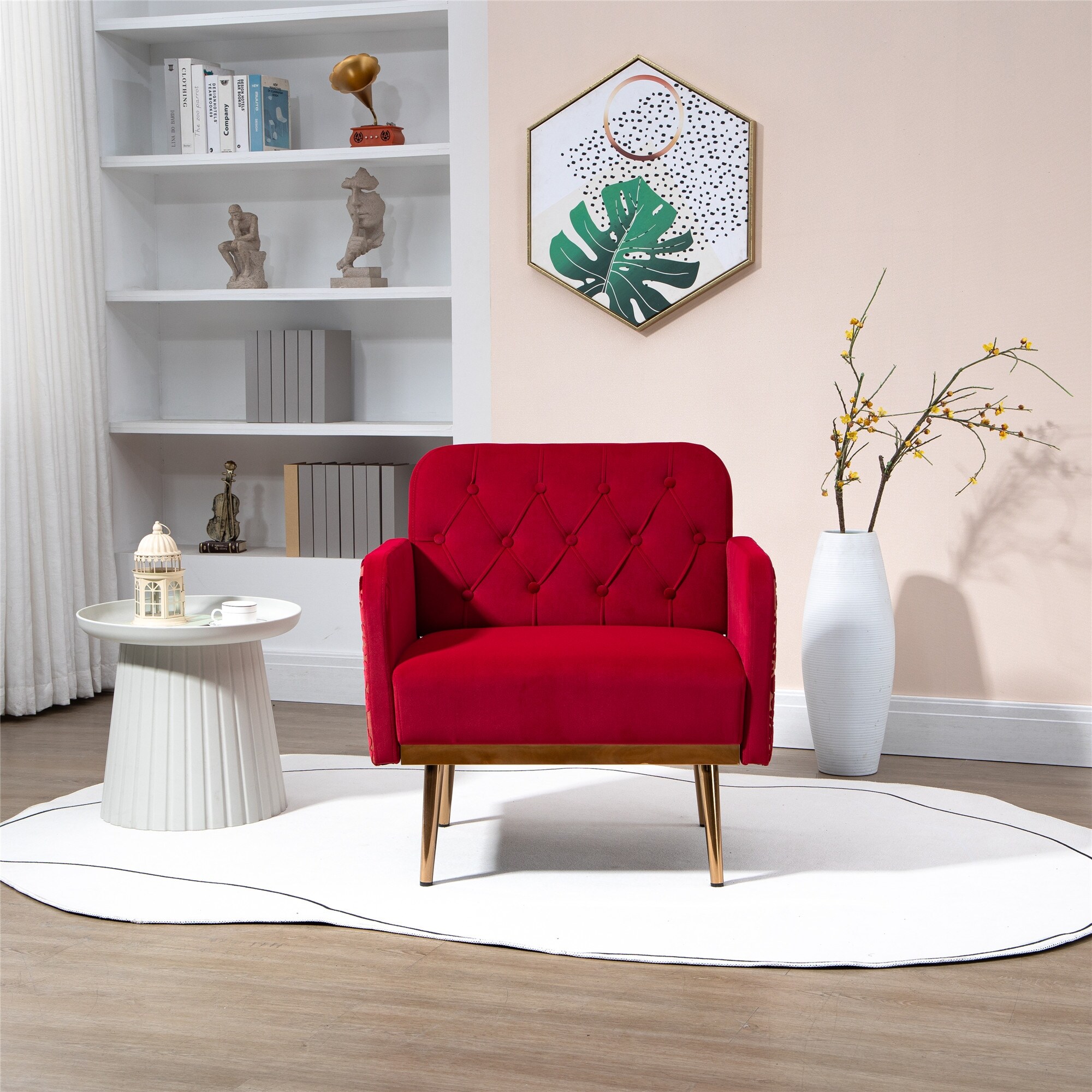 Accent Chairs Arm Chair Velvet Fabric Padded Seat with Metal Base and Button-tufted Backrest