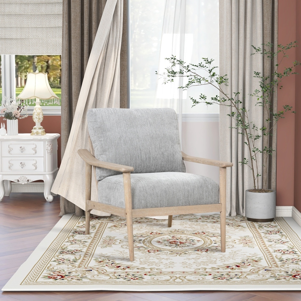 High Back Accent Chair with Wood Frame Comfortable Polyester Fabric Arm Chair for Living Room Bedroom