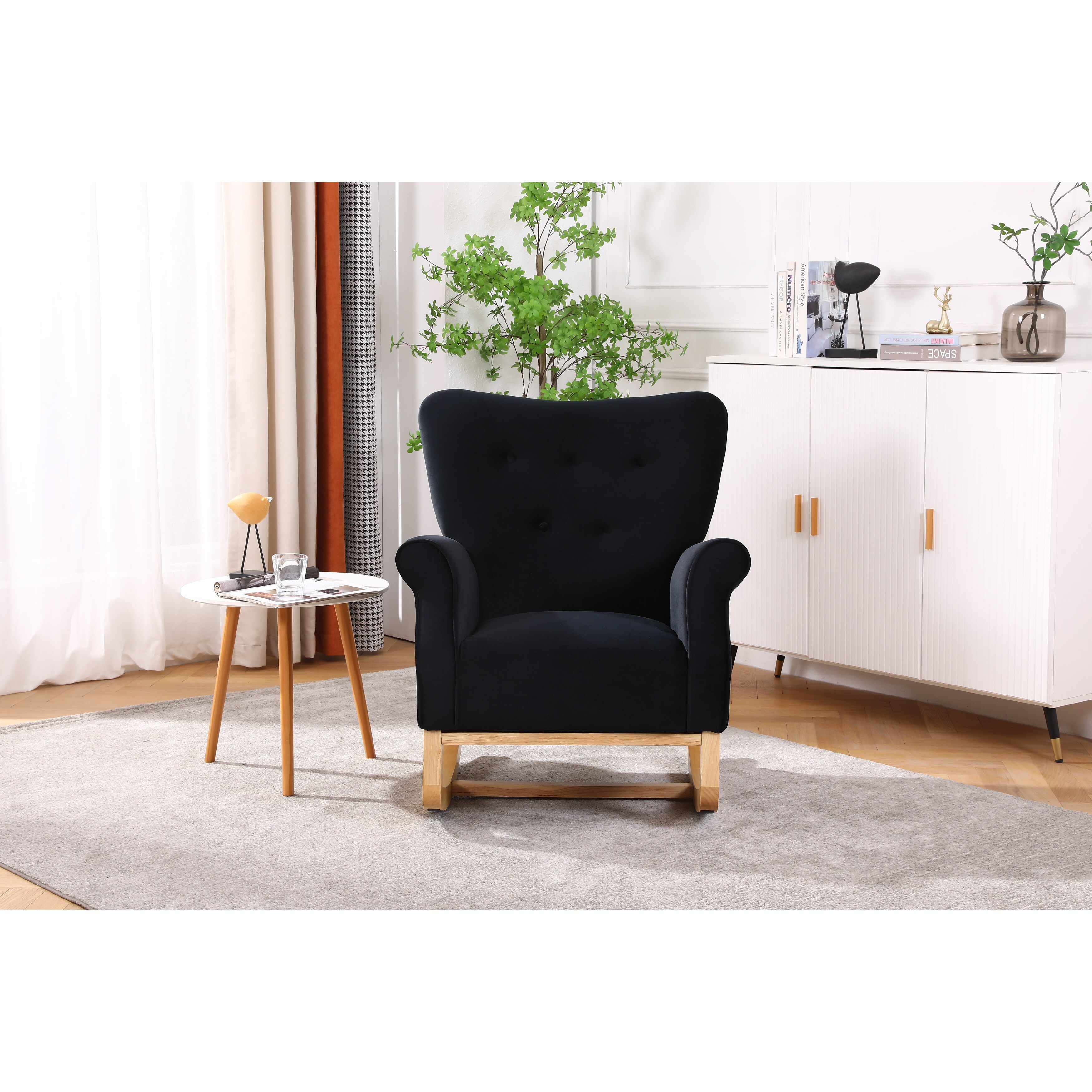 Velvet Tufted Rocking Chair Padded Upholstered Arm Chair
