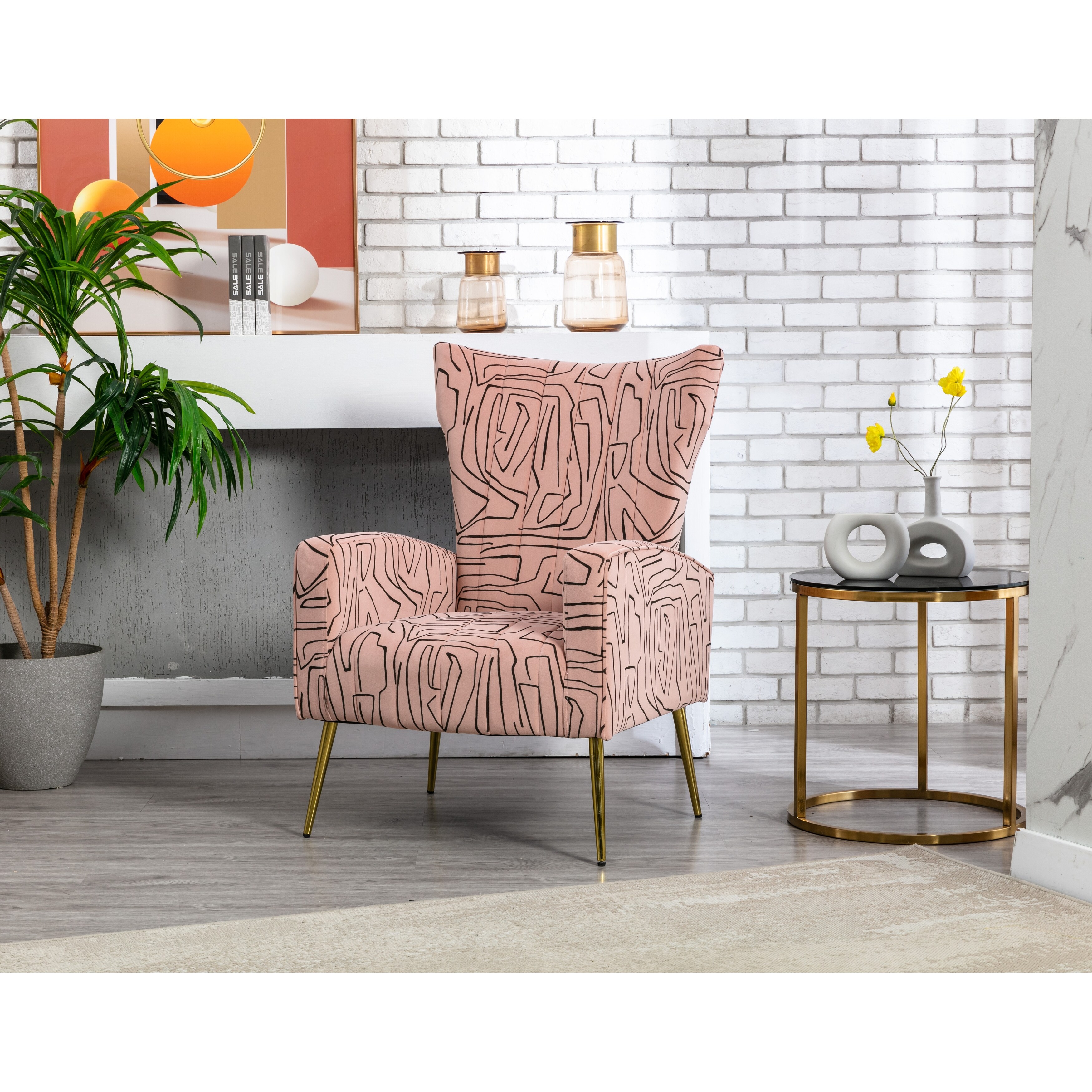 Accent Chair Leisure Single Pattern Arm Chair with Rose Golden Feet