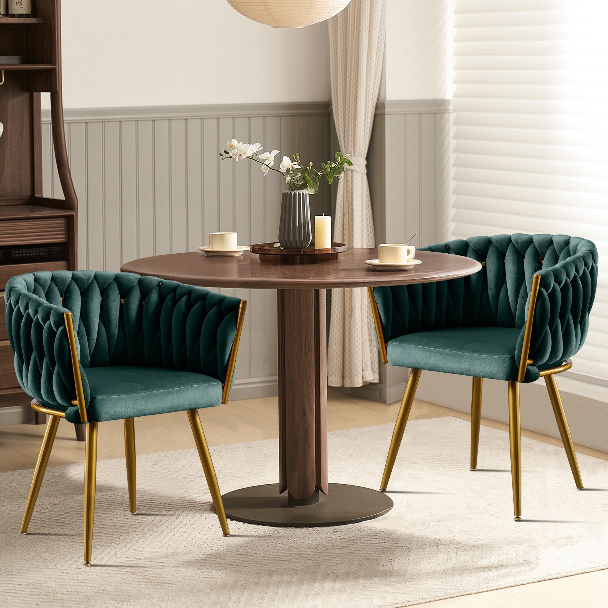 Modern Velvet Accent Chairs Set of 2 Hand Weaving Arm Chairs, Upholstered Side Chair for Living Room, Bedroom, Grey