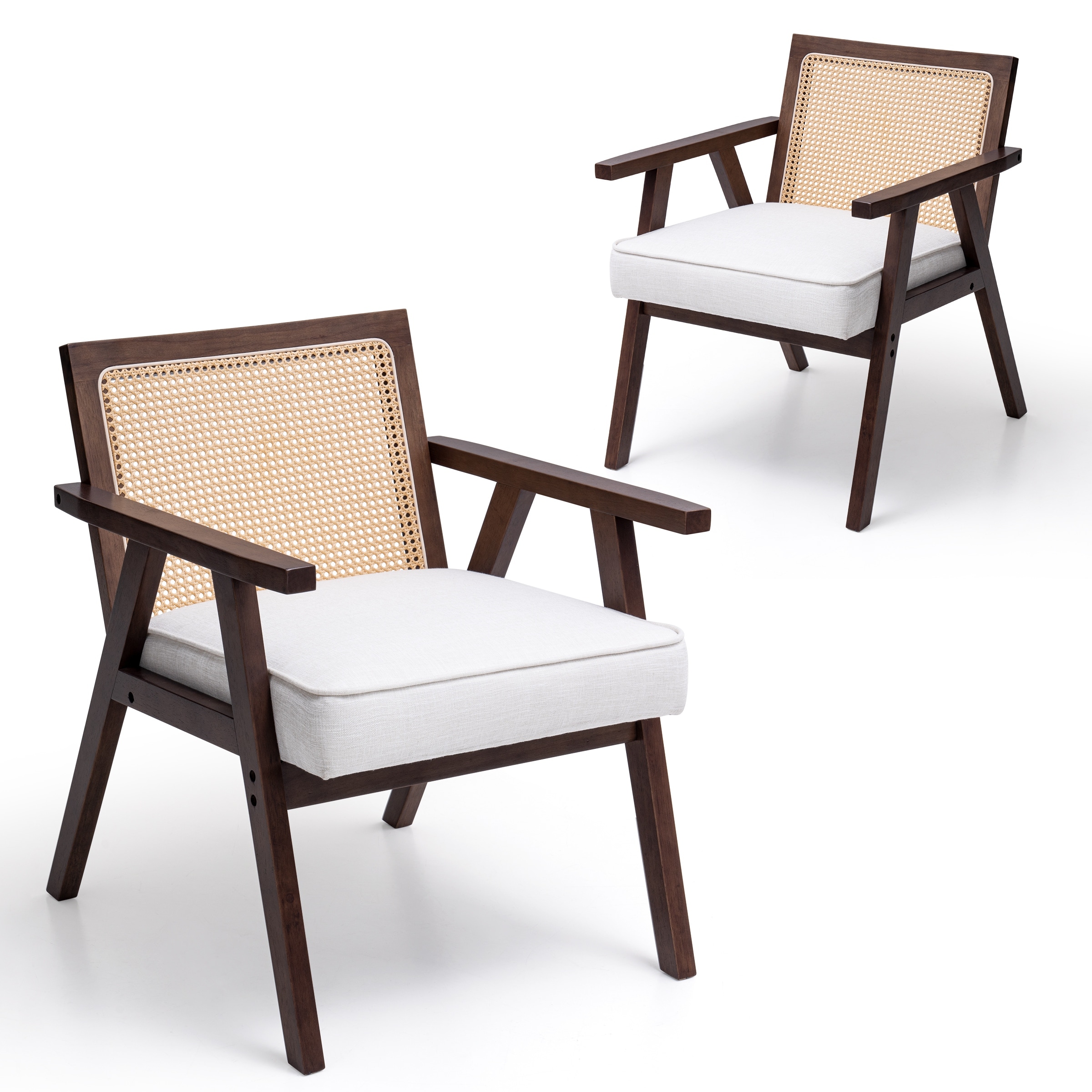 Living Room Chair Rattan Back Upholstered Arm Chair