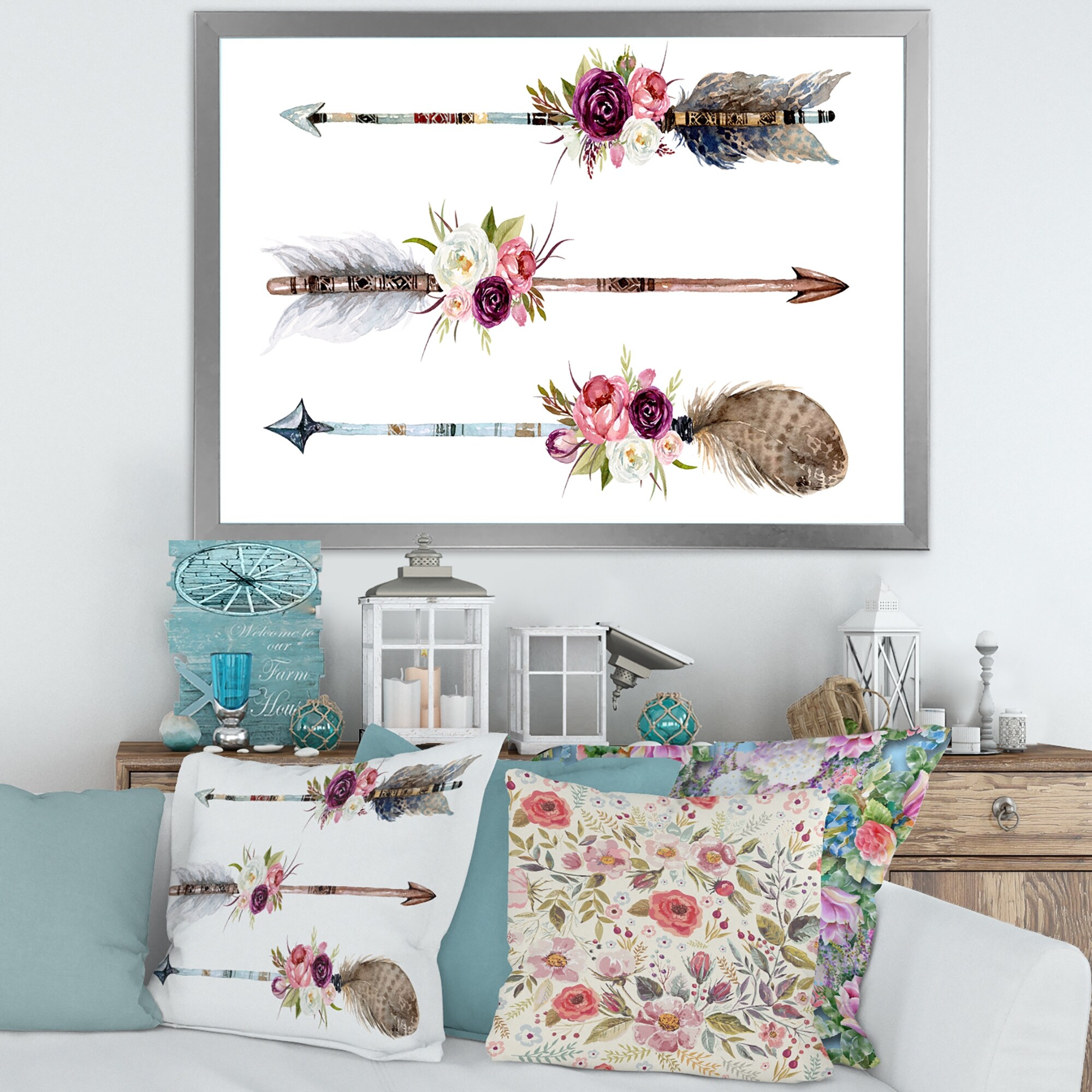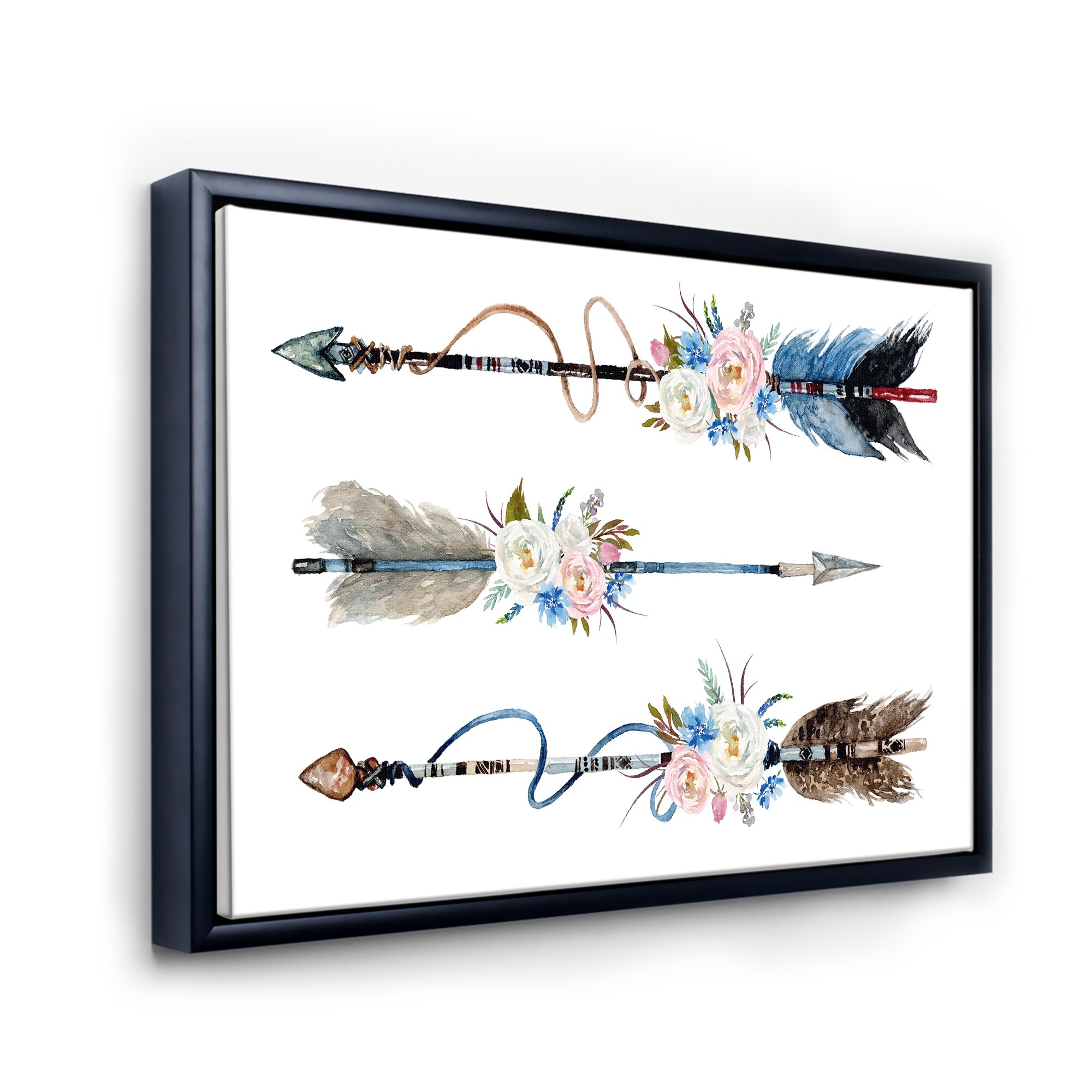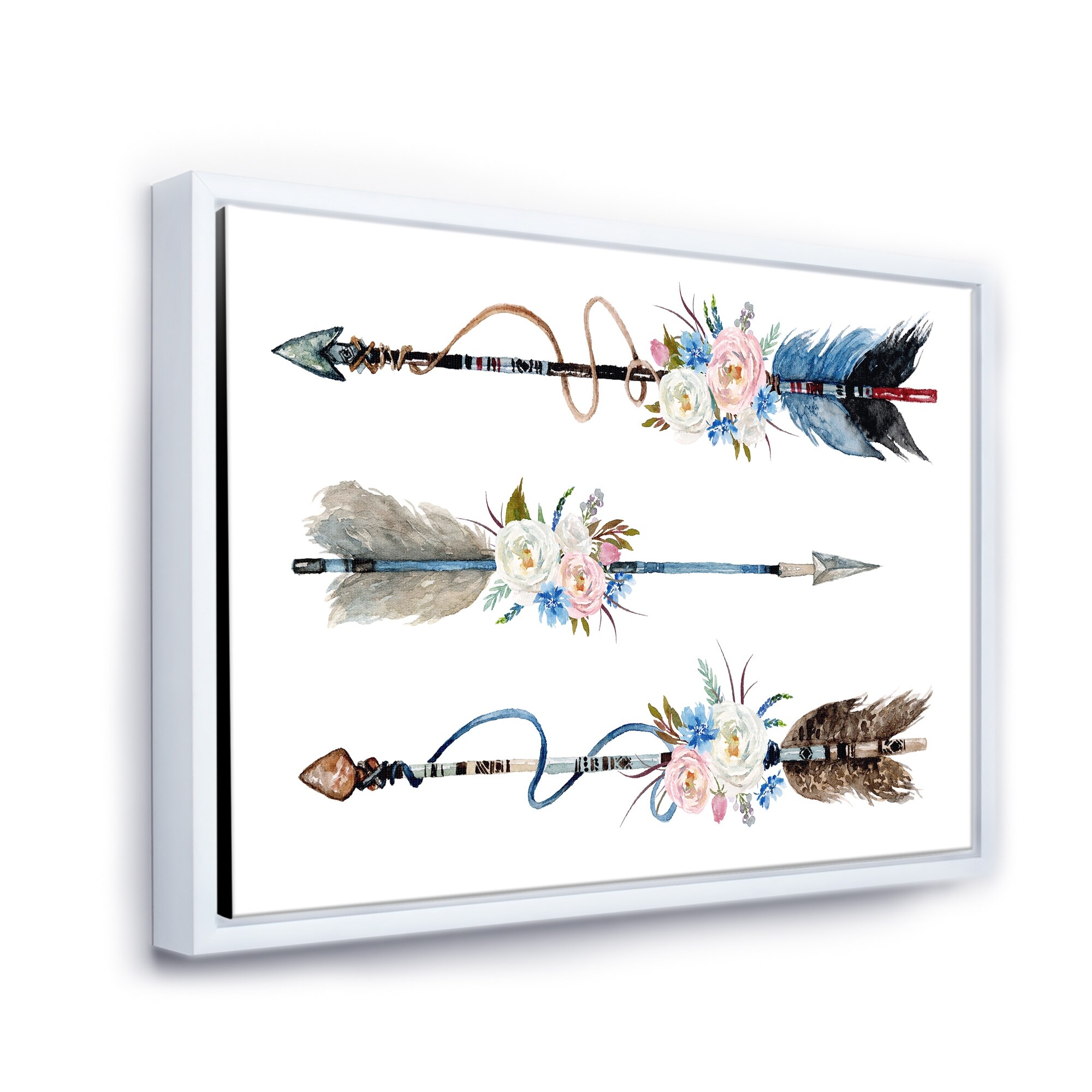 Designart "Ethnic Feathers and Flowers on Native Arrows I" Bohemian & Eclectic Framed Canvas Wall Art Print