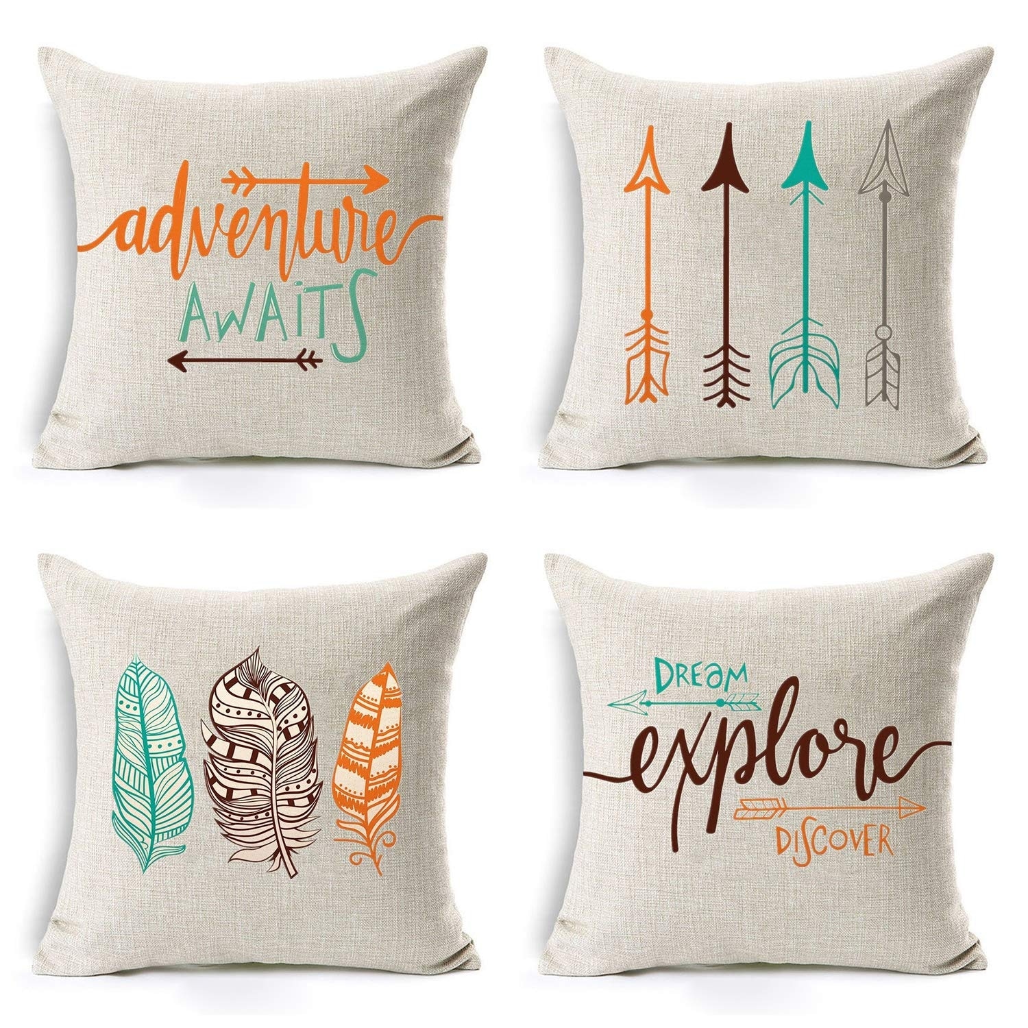 Designart 'Ethnic Feathers and Flowers on Native Arrows II' Bohemian & Eclectic Printed Throw Pillow