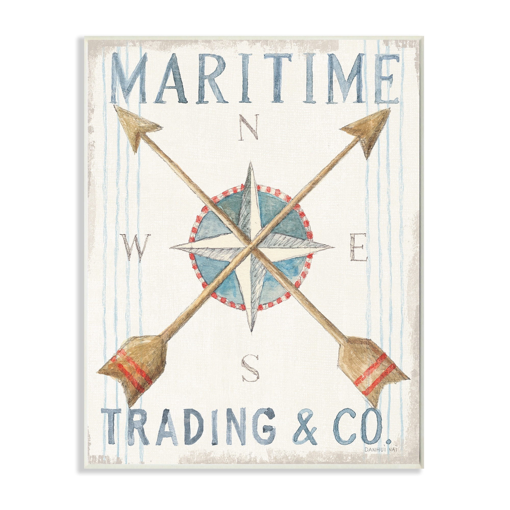 Stupell Industries Crossed Arrow Nautical Compass Pastel Watercolor Wood Wall Art