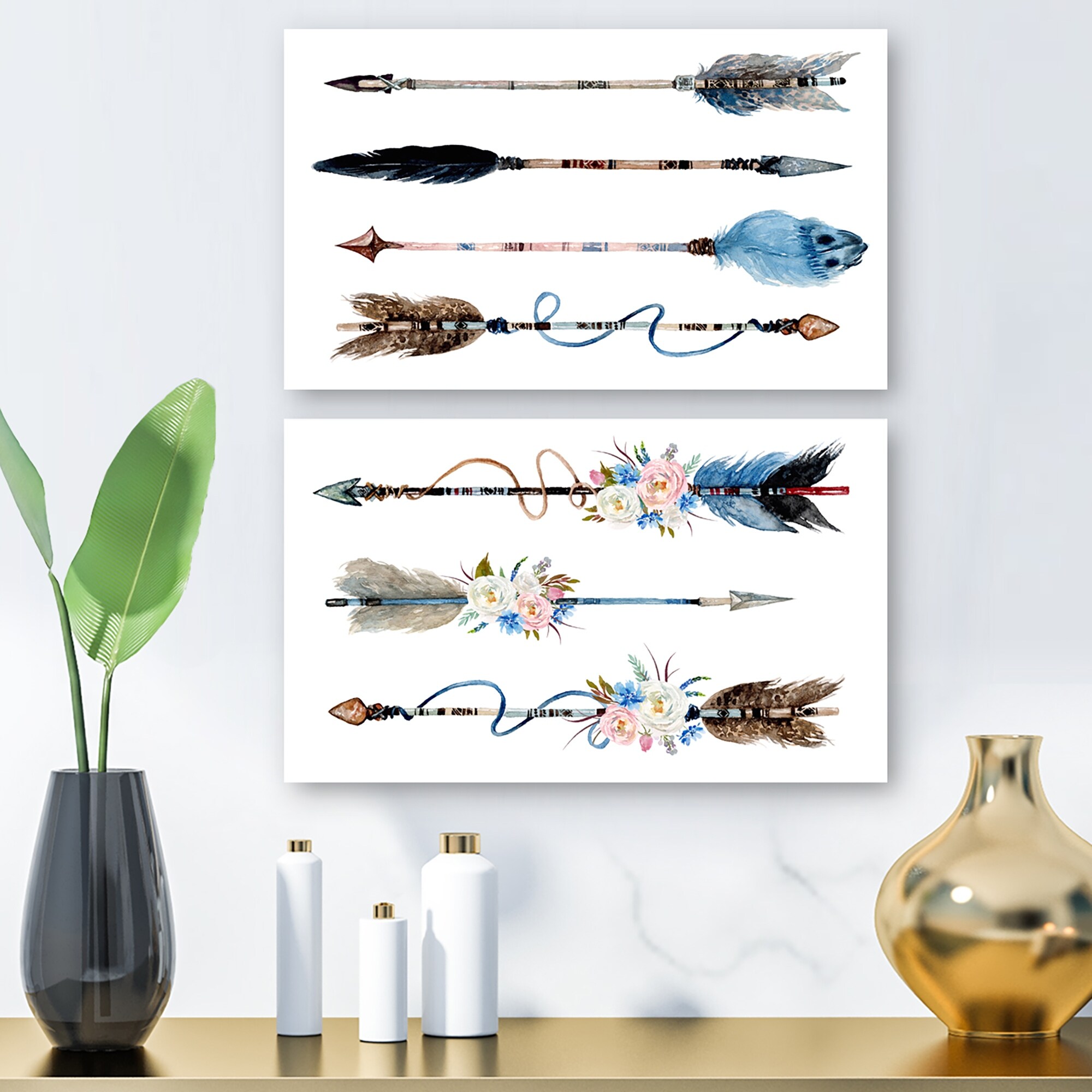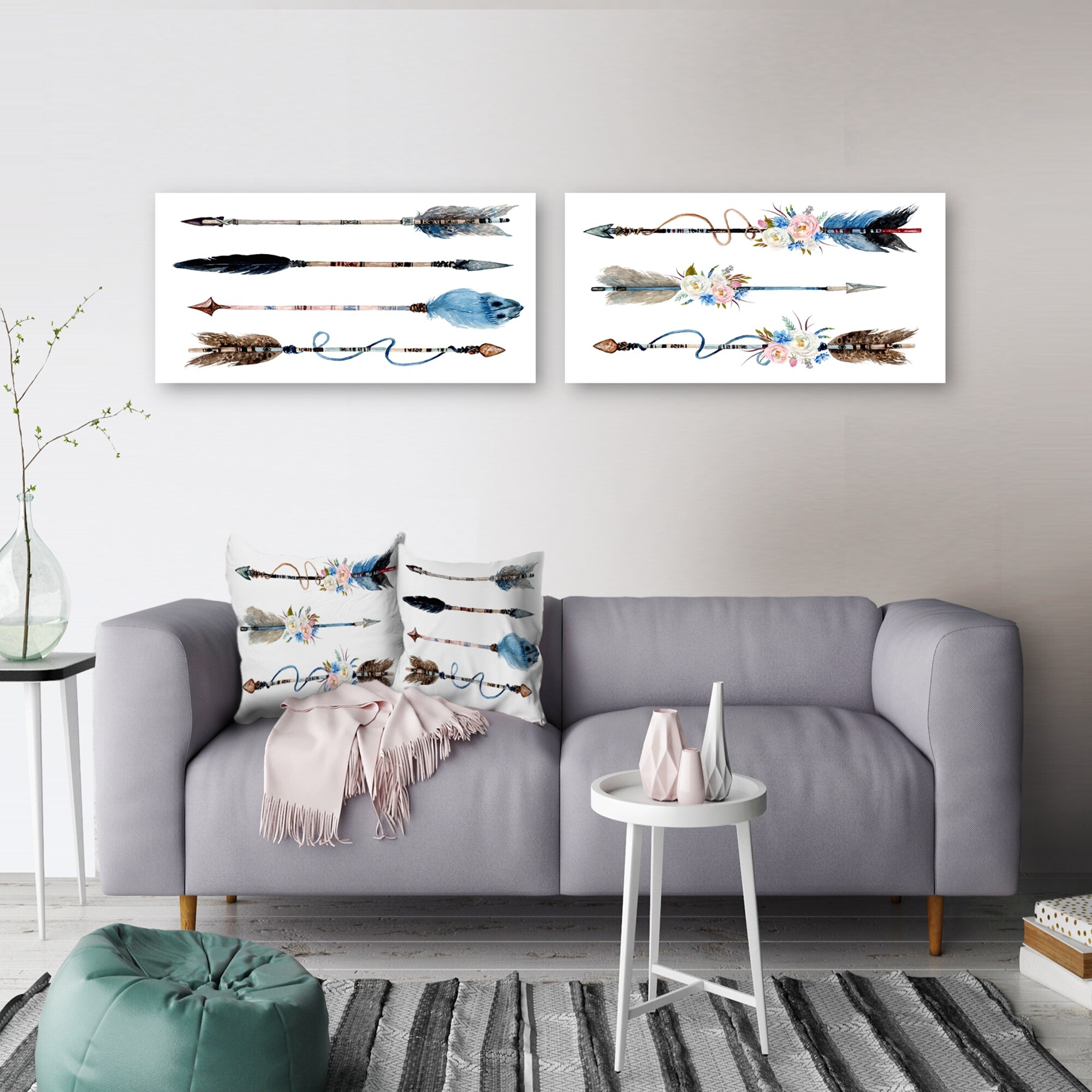 Designart 'Ethnic Feathers and Flowers on Native Arrows Collection II' Bohemian & Eclectic Set of 2 Pieces