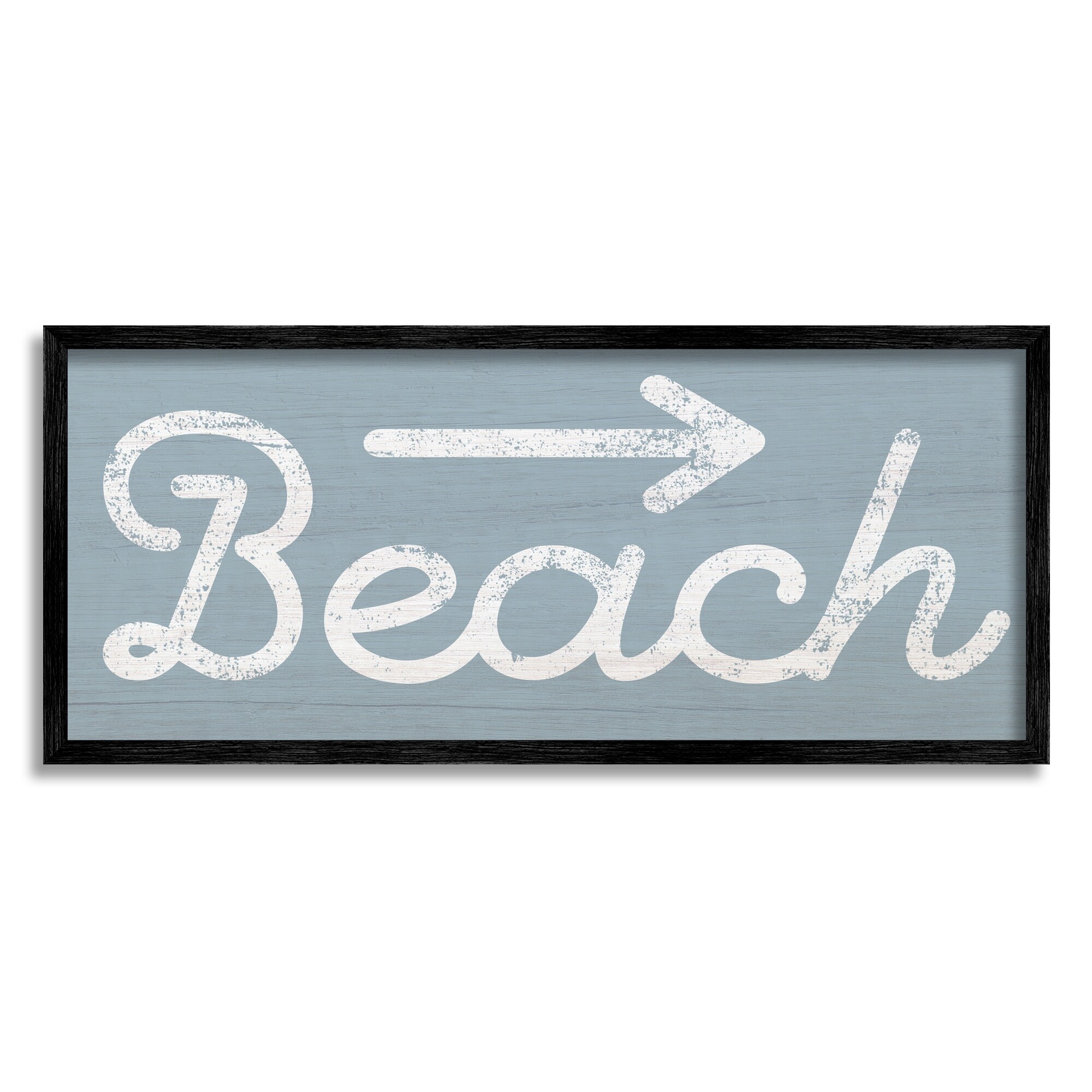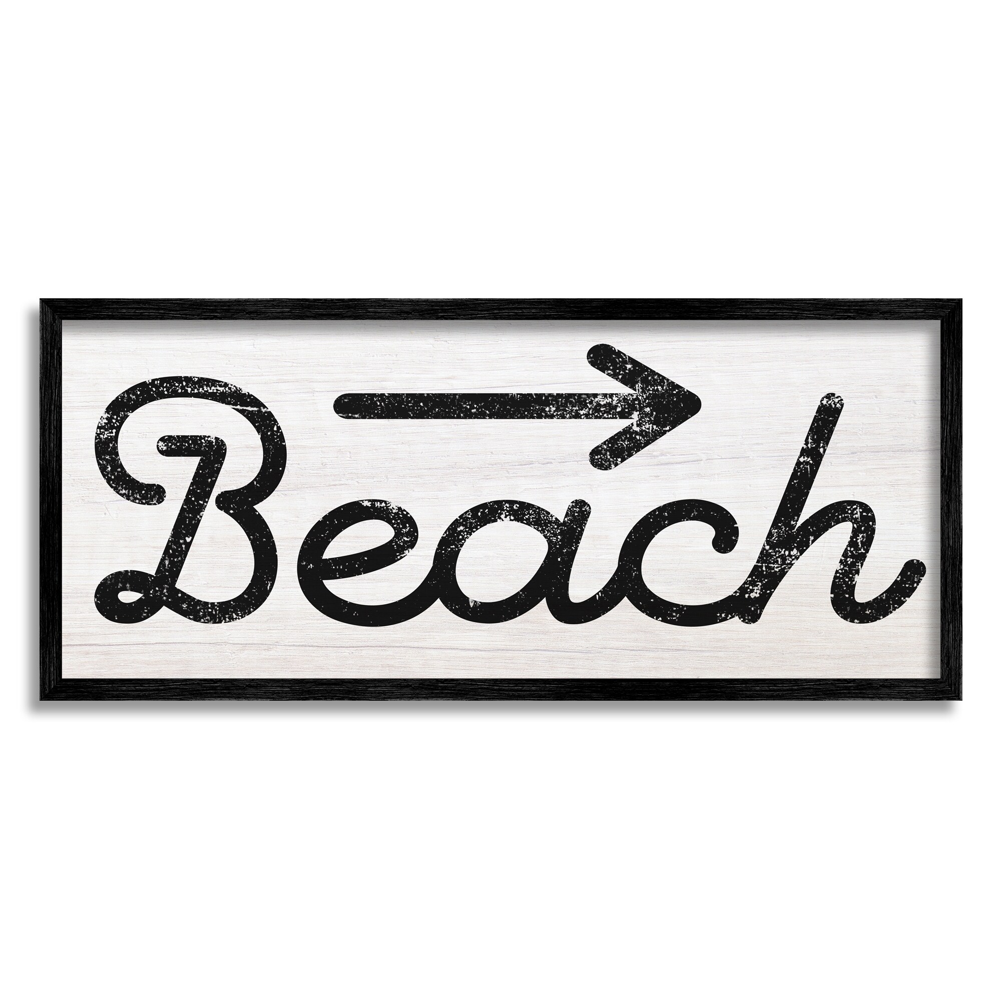 Stupell Vintage Beach Arrow Pointing Sign Grain Pattern Framed Wall Art, Design by Daphne Polselli