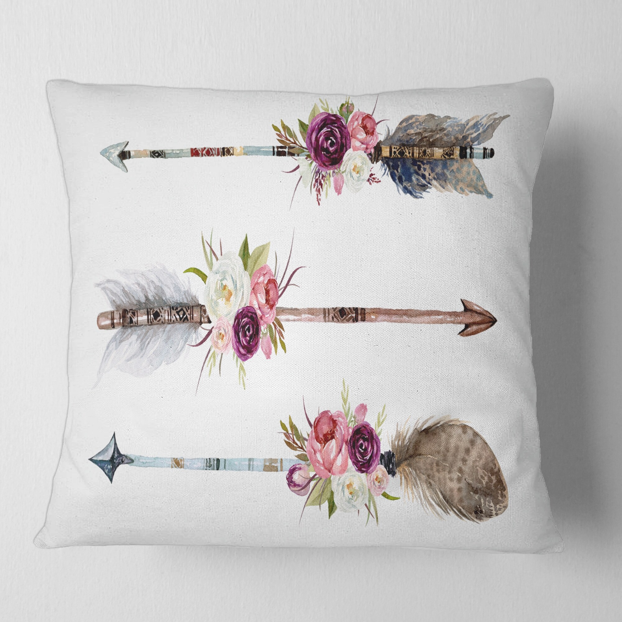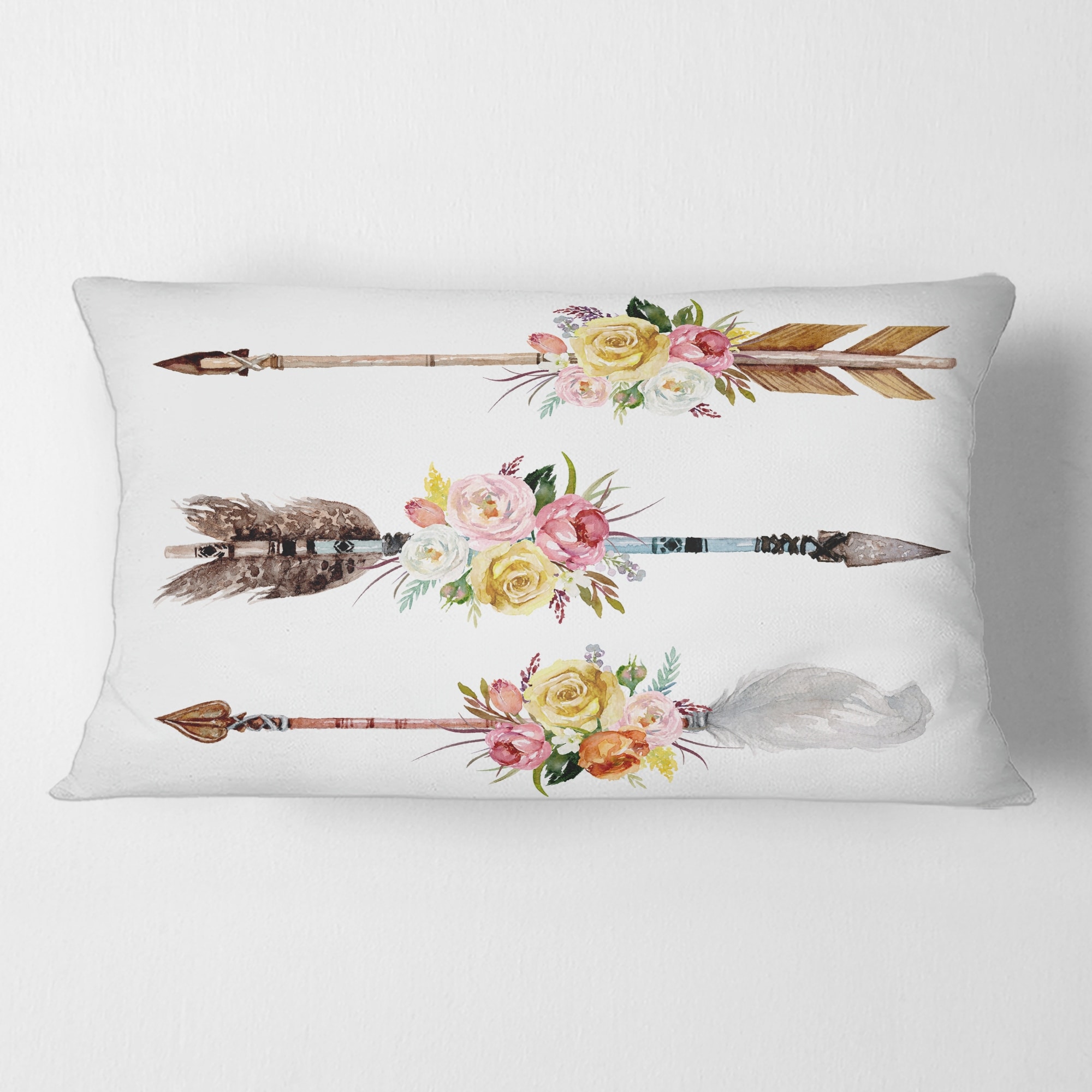 Designart 'Ethnic Feathers and Flowers on Native Arrows III' Bohemian & Eclectic Printed Throw Pillow
