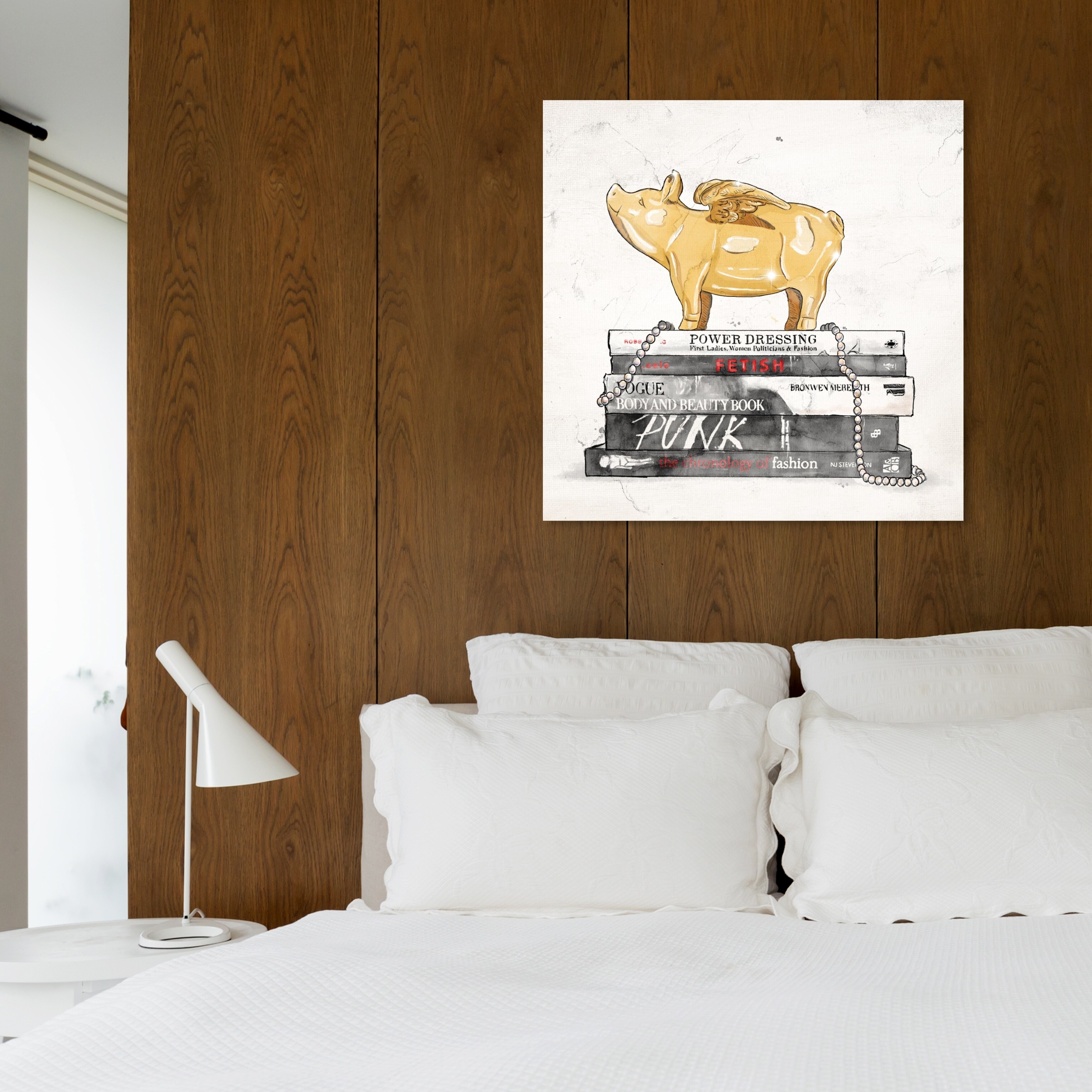 Oliver Gal 'Flying Pig Books Luxe' Fashion and Glam Wall Art Canvas Print - Gold, White