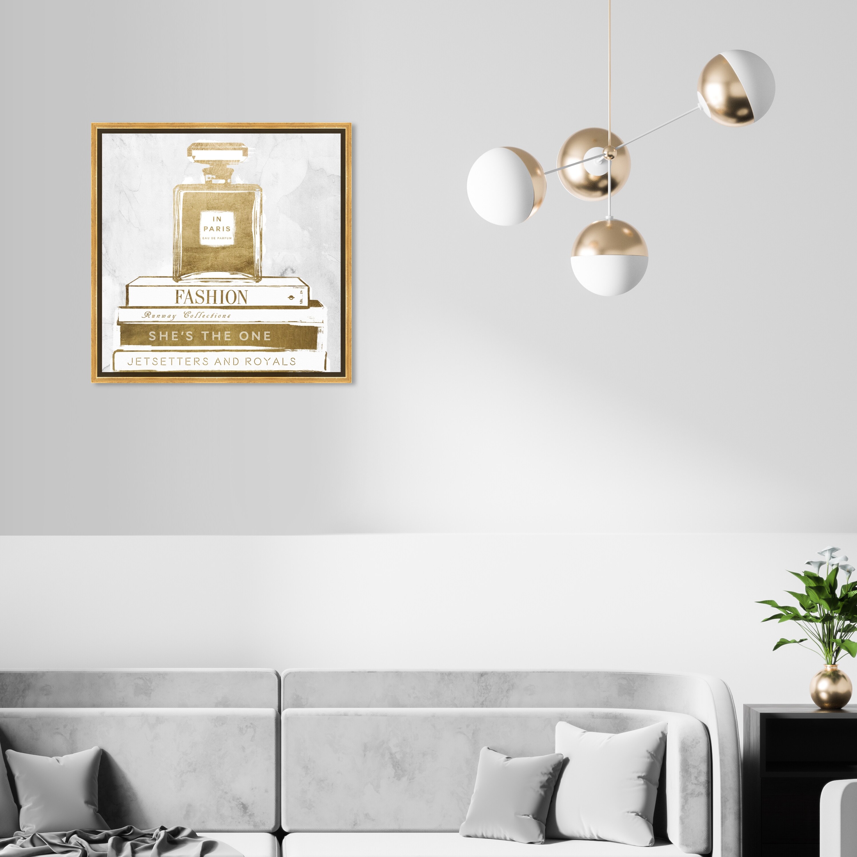 Oliver Gal 'Perfume And Books Gold' Fashion and Glam Wall Art Framed Canvas Print Perfumes - Gold, White