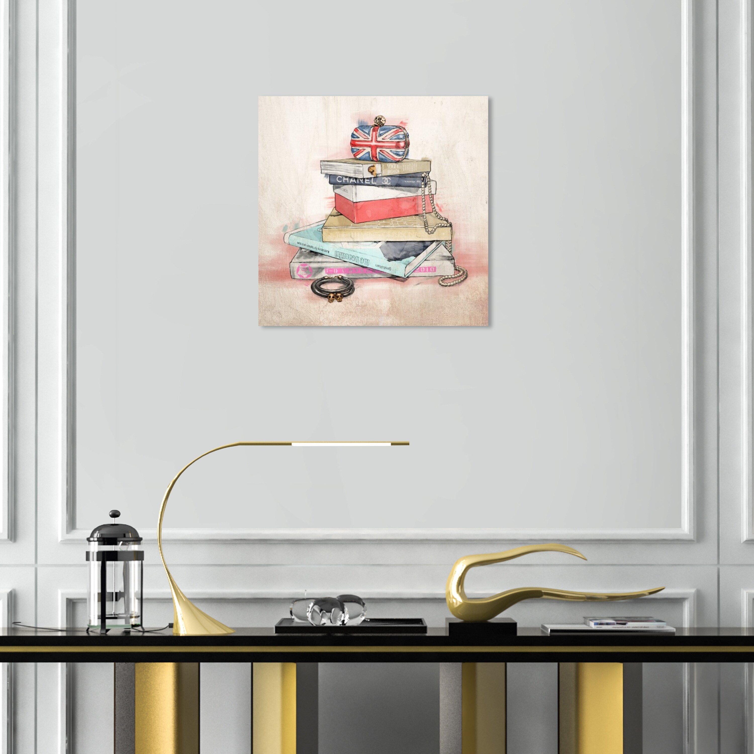Oliver Gal 'Doll Memories - Pink books Square' Fashion and Glam Wall Art Canvas Print Books - Pink, Black