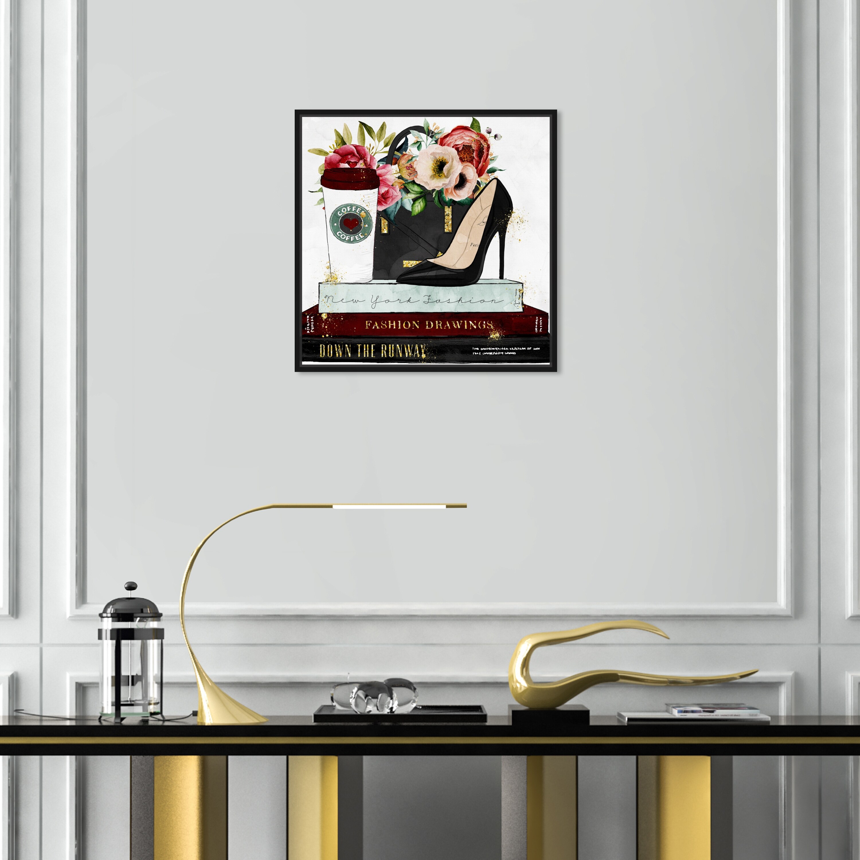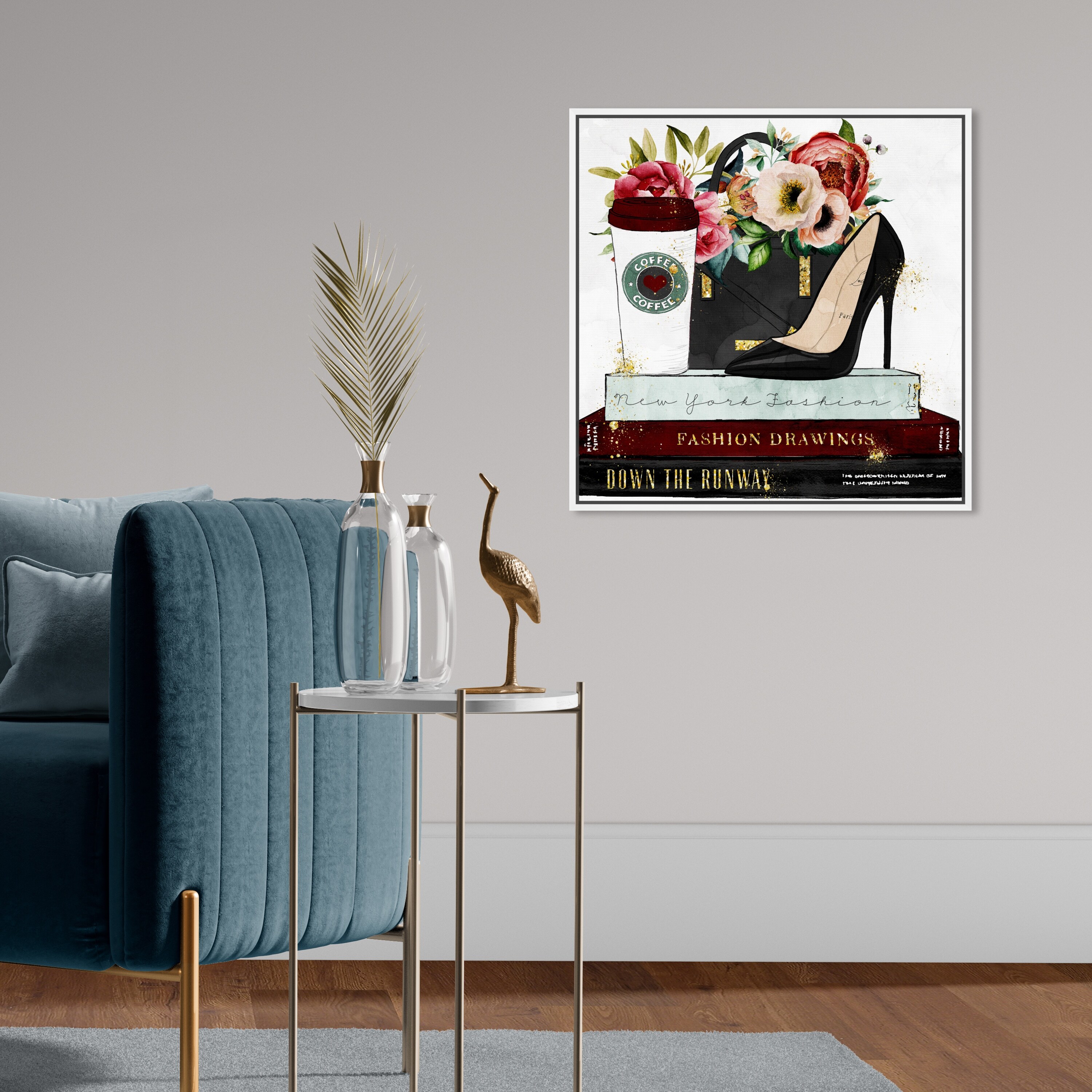 Oliver Gal 'Coffee and Books Grey' Fashion Black Wall Art Canvas Print