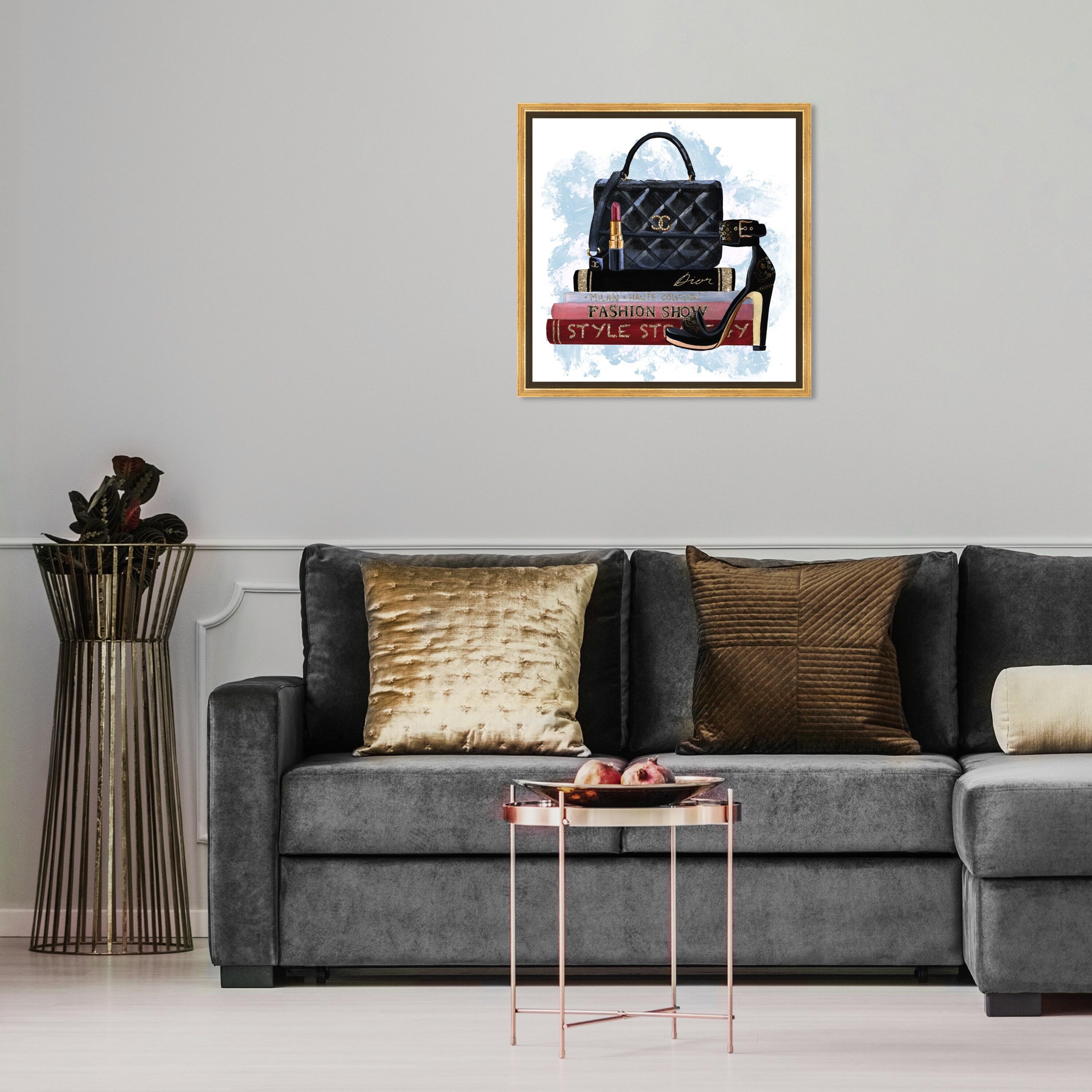 Oliver Gal 'Accessories and Books Black Glitter' Fashion and Glam Wall Art Framed Canvas Print Books - Pink, Black