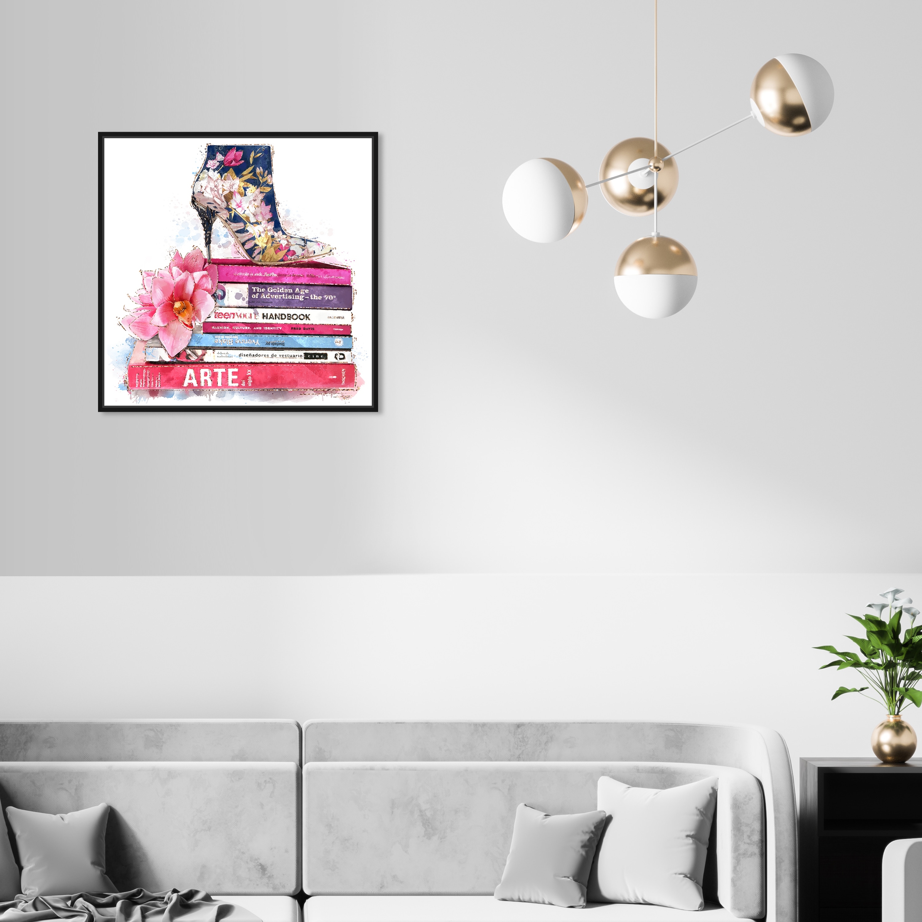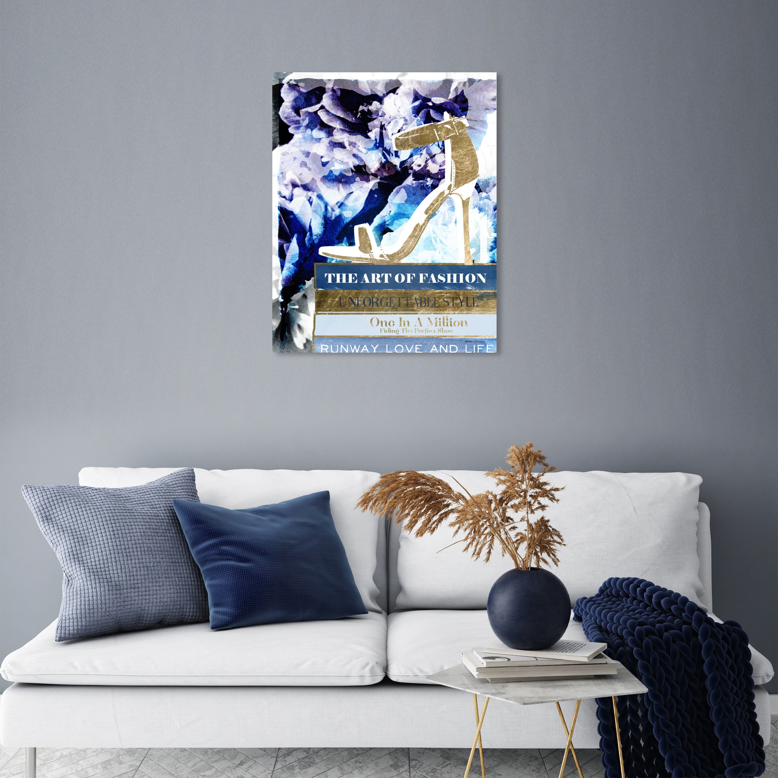 Oliver Gal 'The Ultimate Floral Boot' Fashion and Glam Wall Art Framed Canvas Print Books - Pink, Blue