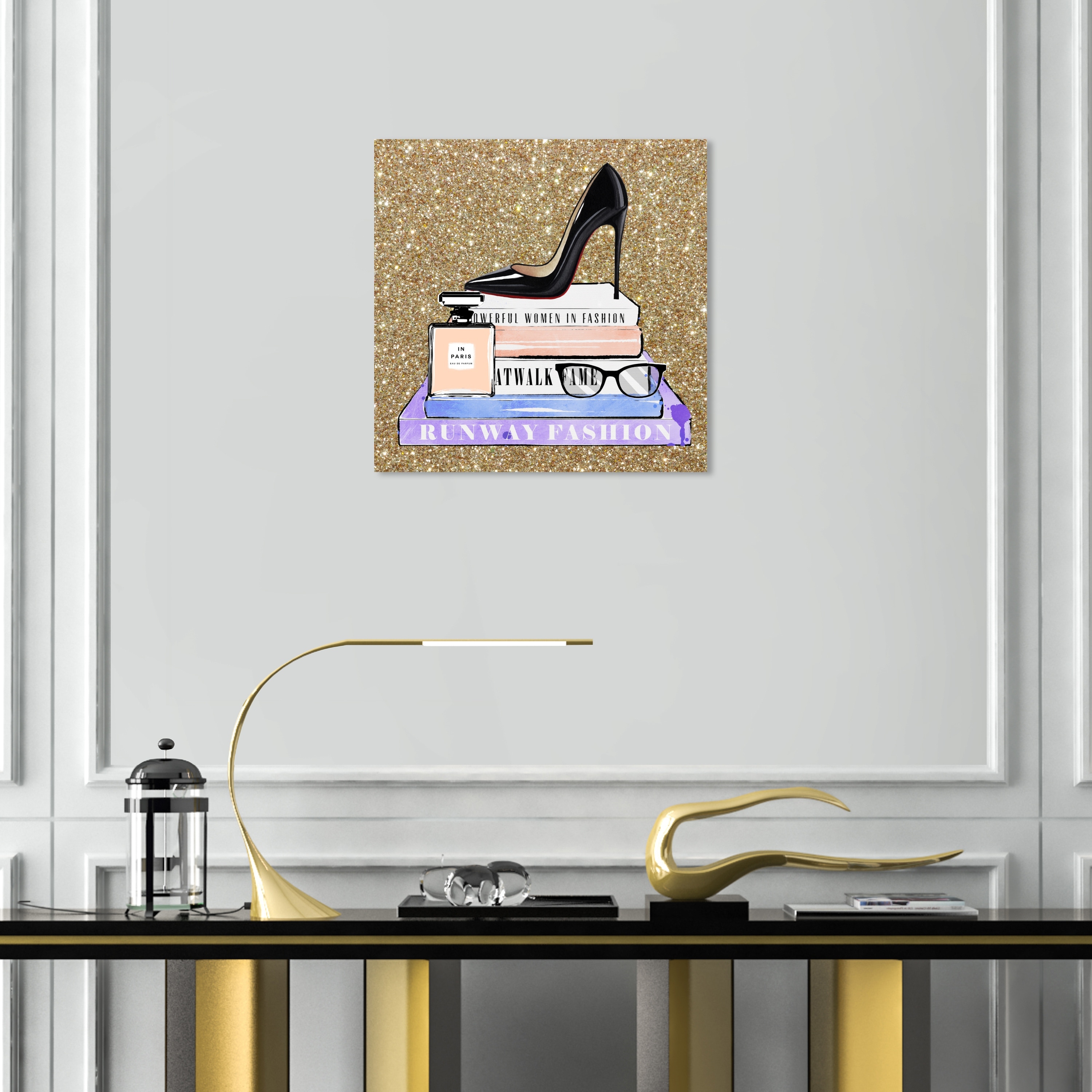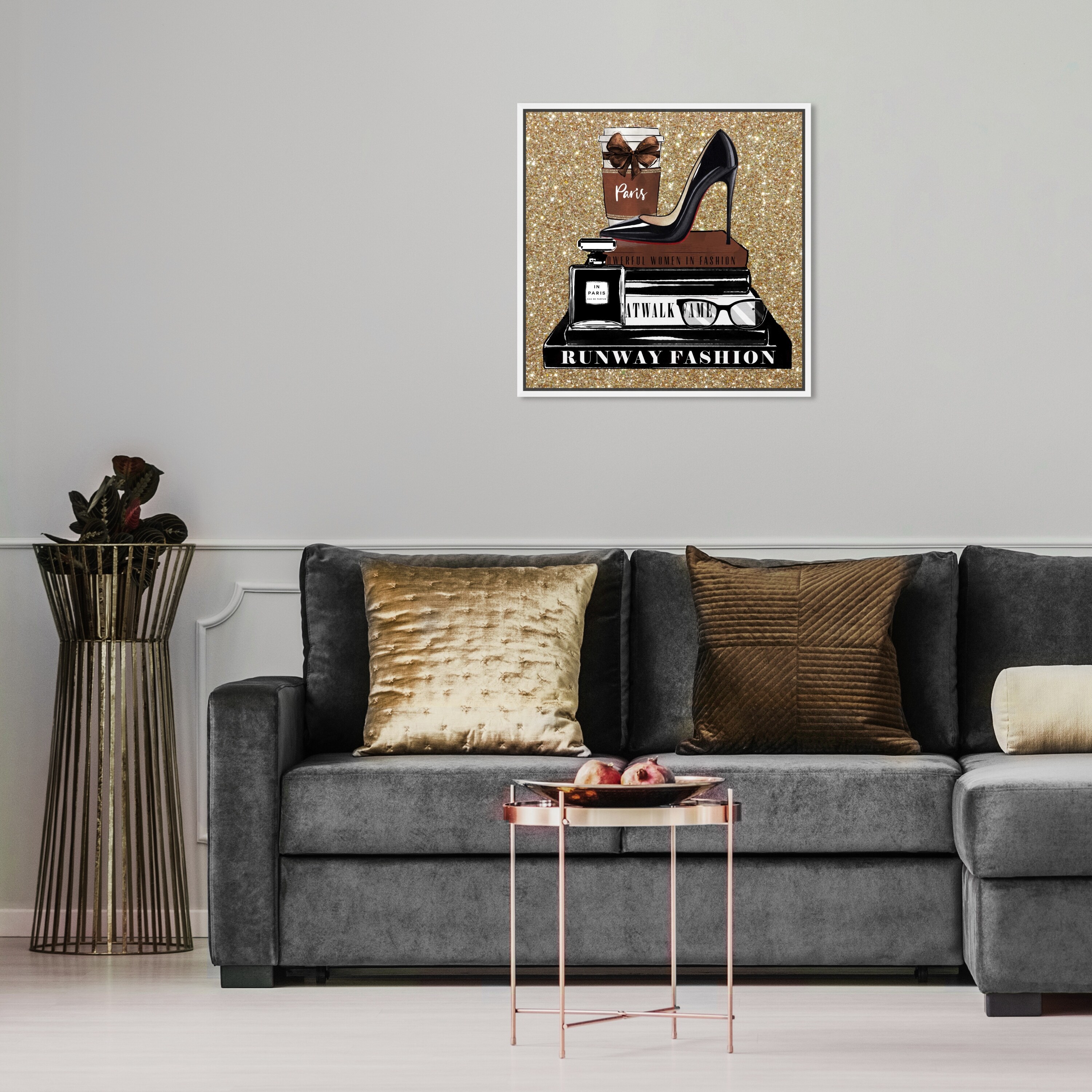 Oliver Gal 'Book Addict Serenity' Fashion and Glam Wall Art Framed Canvas Print Shoes - Gold, Gray