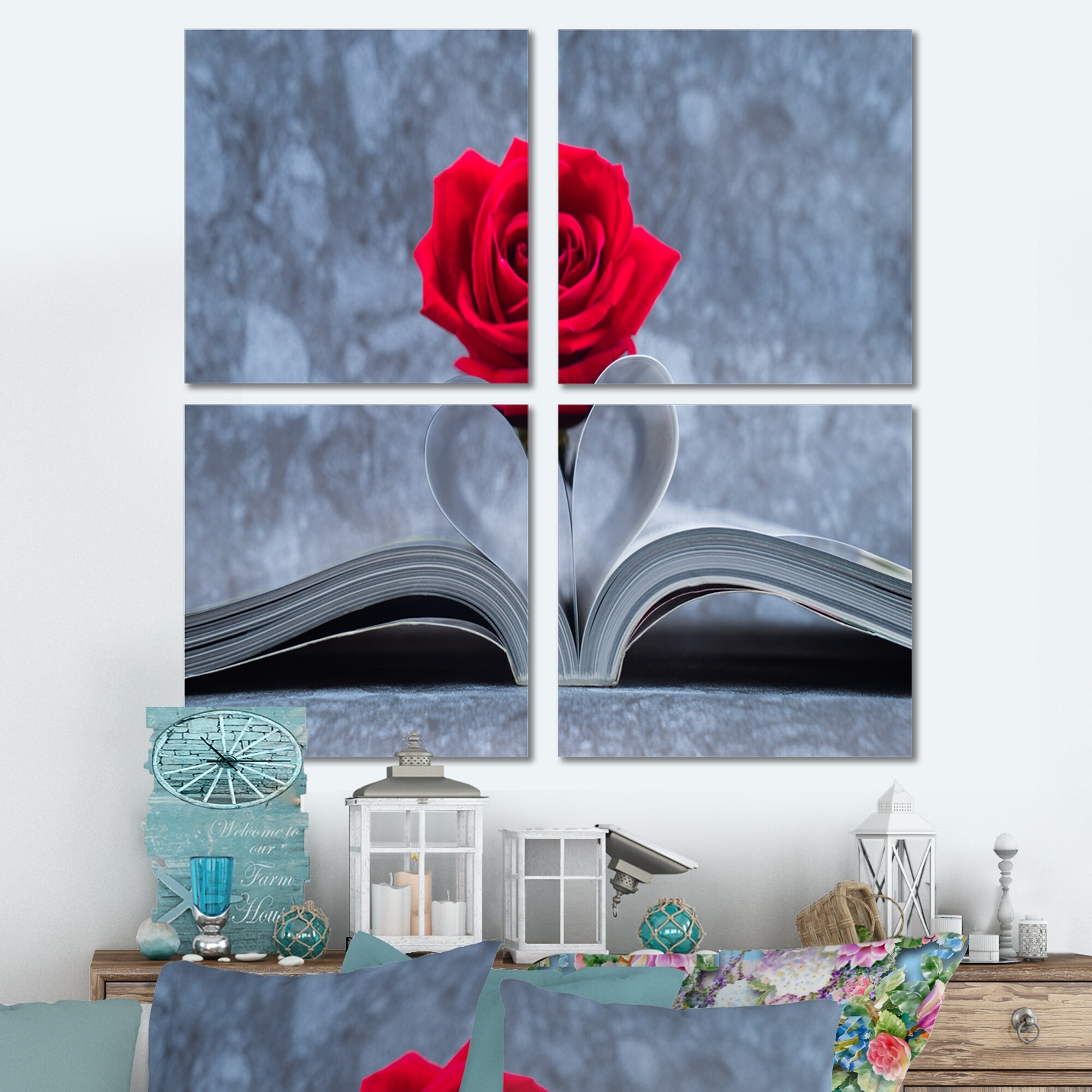 Designart "Red Rose Inside the Book" Floral Canvas Wall Art Print