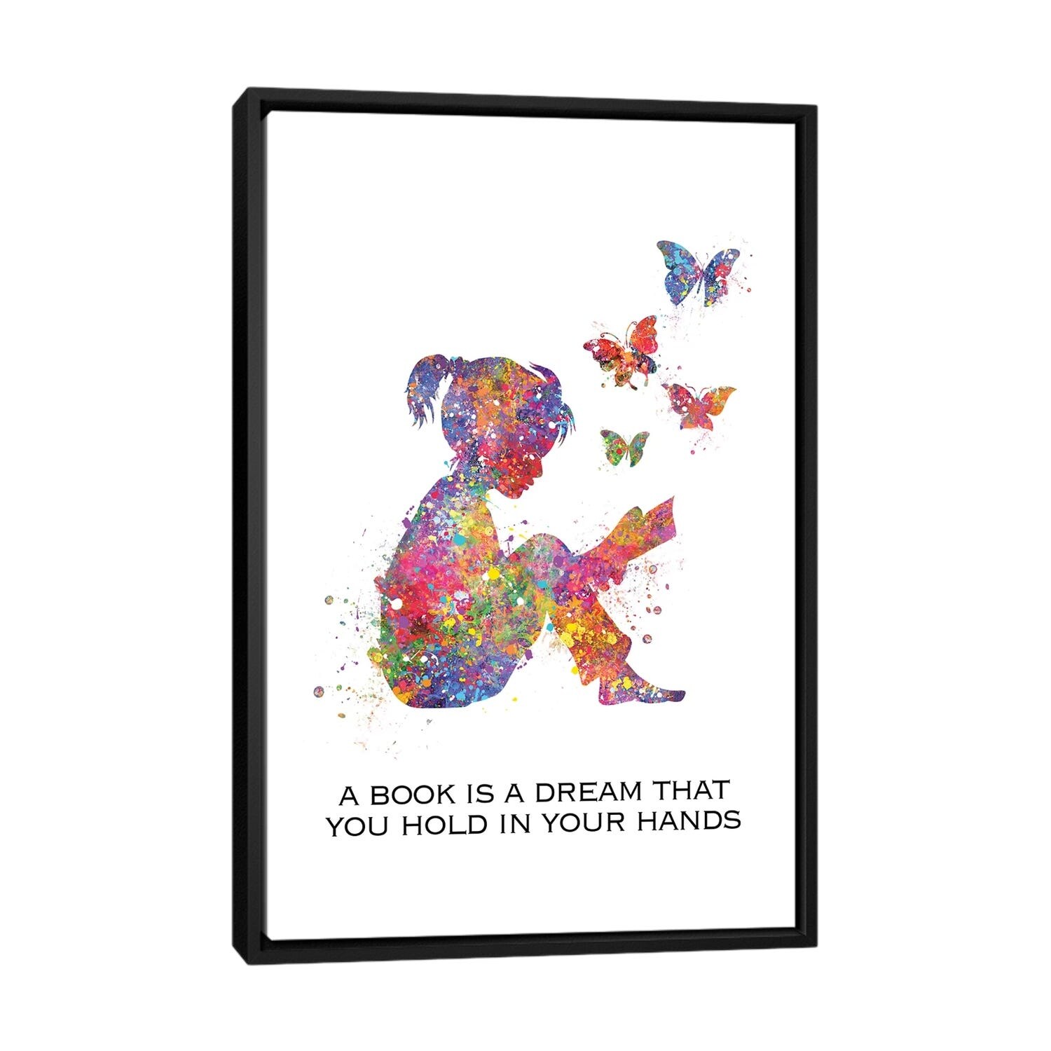 iCanvas "Girl Read Book Quote" by Genefy Art Framed Canvas Print