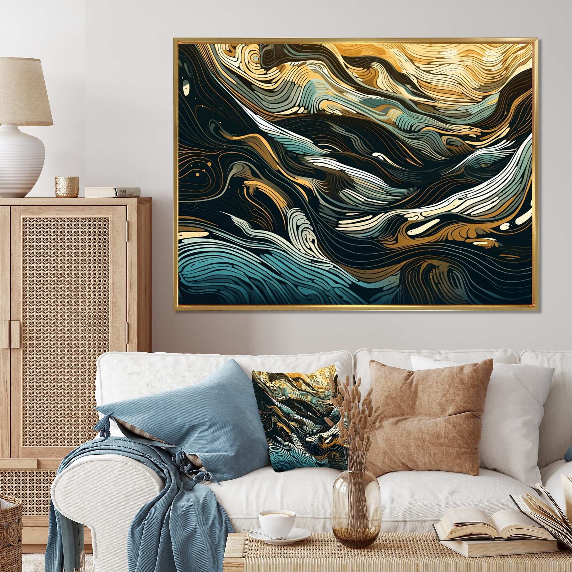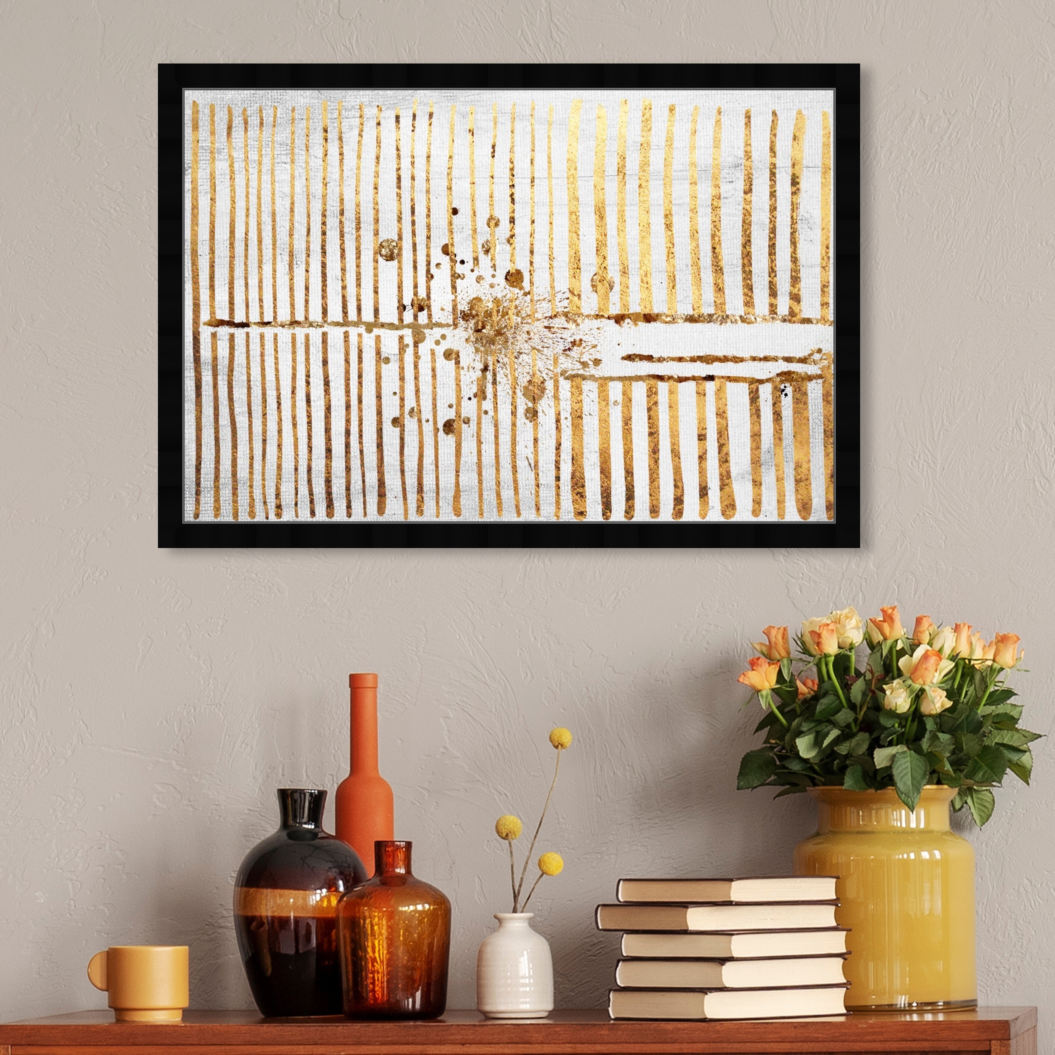 Oliver Gal 'Love Force Field Gold' Abstract Framed Wall Art Prints Patterns - Gold, White
