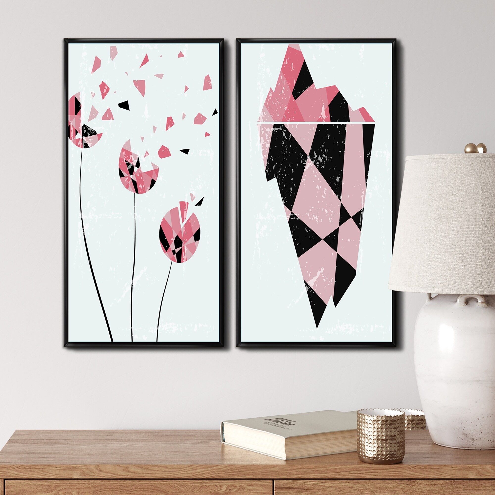 Designart "Retro Abstract Colorful Geometric Designs VIII" Geometric Framed Art Set of 2 Pieces