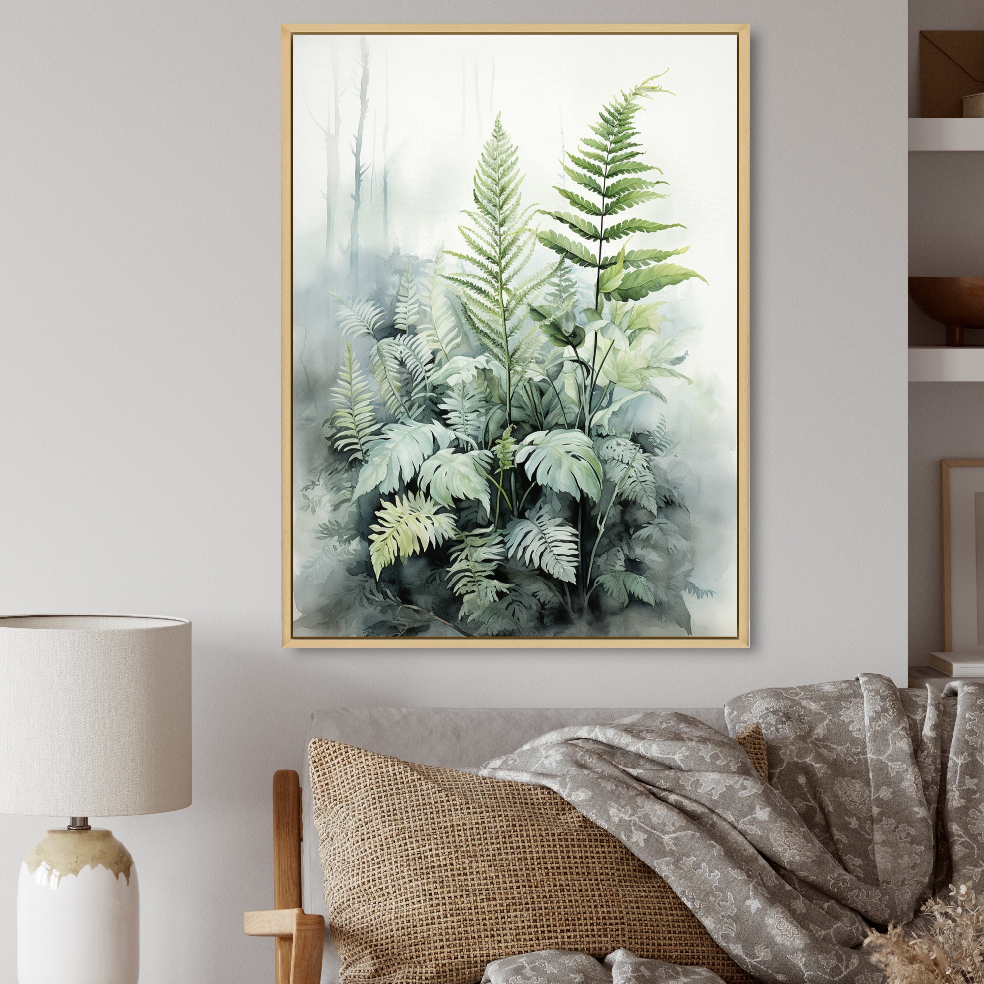 Designart "Minimal Ferns Emerald Reverie I" Ferns Framed Wall Art Prints