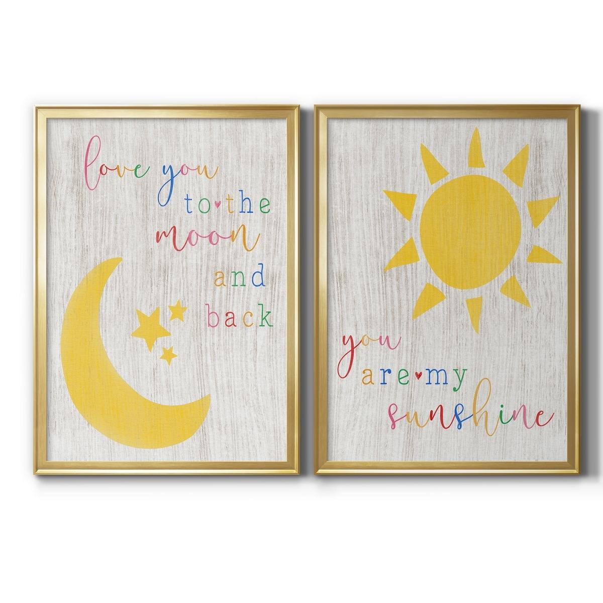 Designart "Retro Abstract Colorful Geometric Typography VII" Geometric Framed Art Set of 2 Pieces