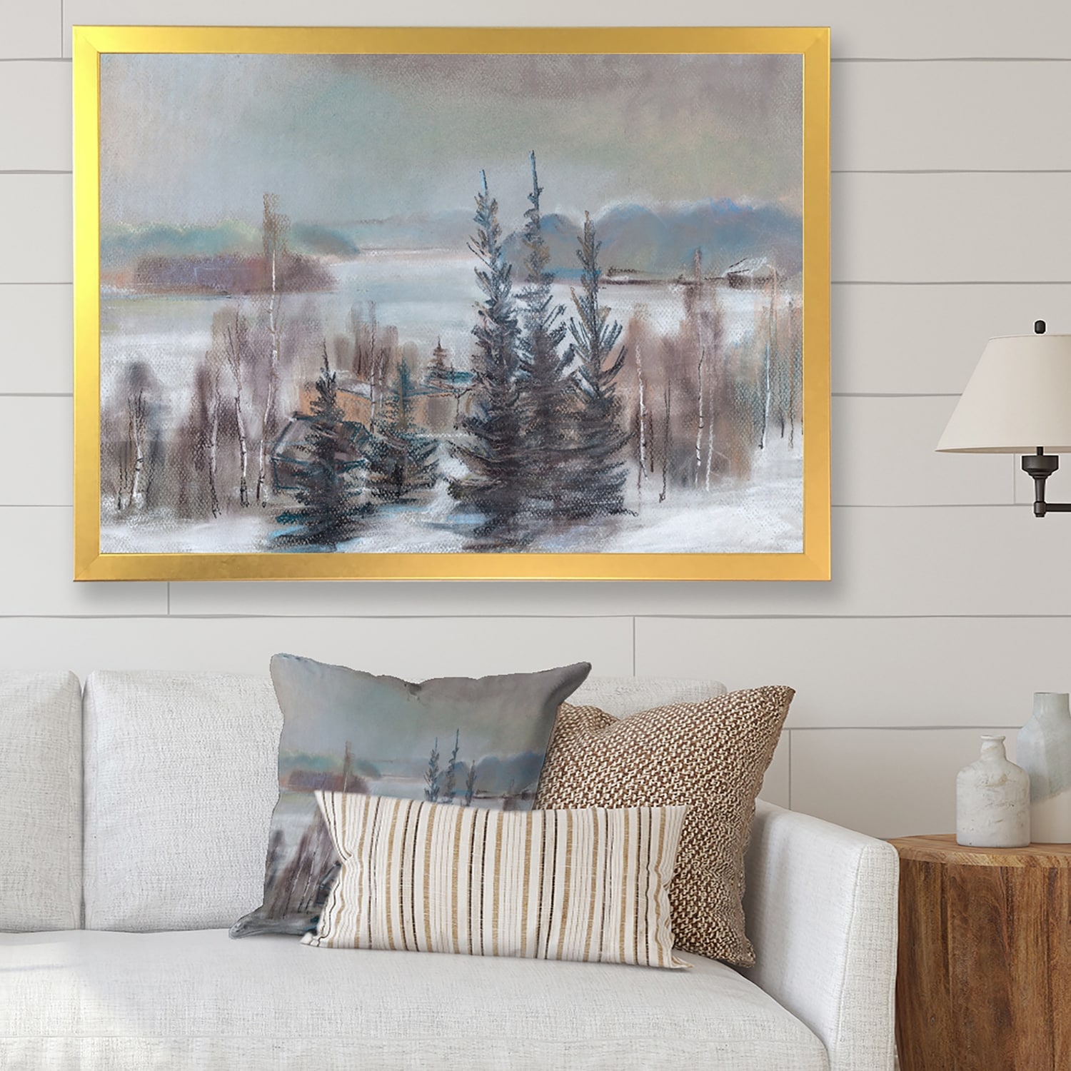 Designart "Winter Forest Landscape" Traditional Framed Wall Art