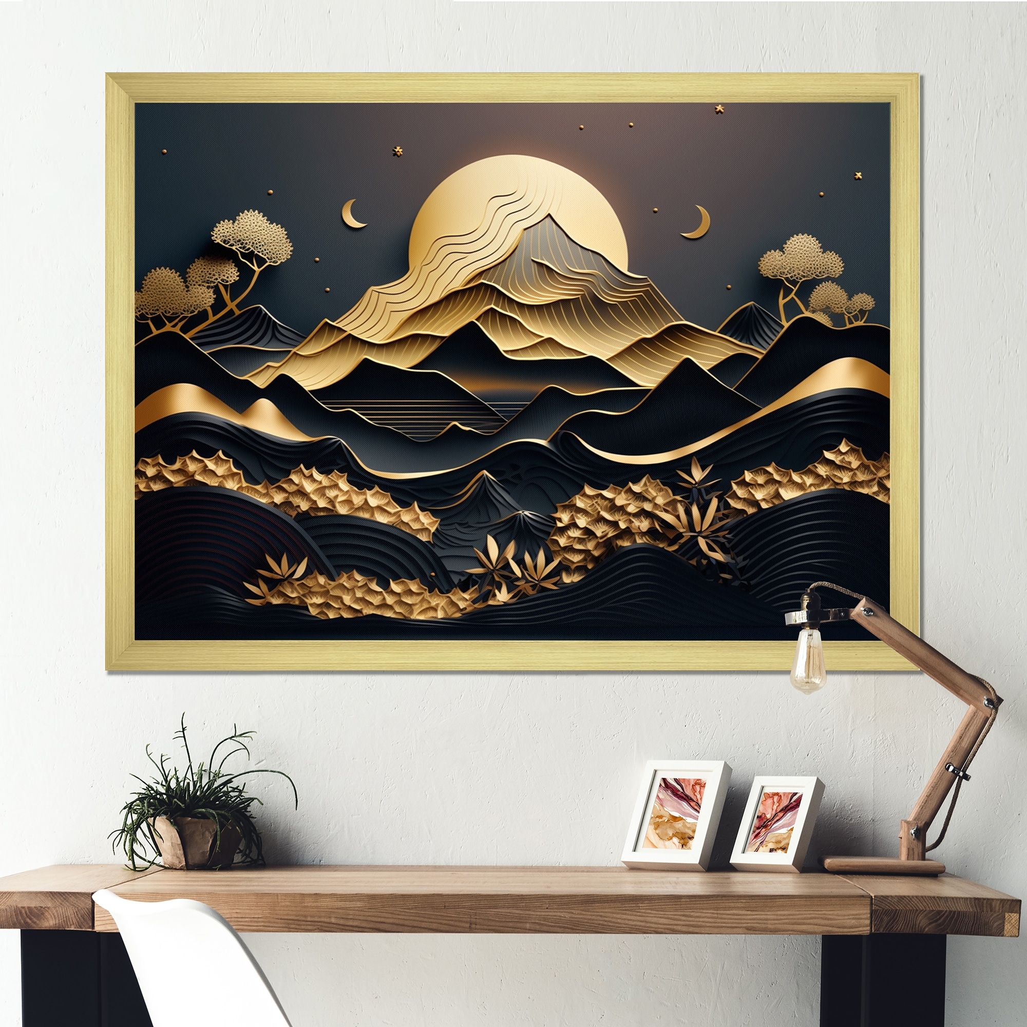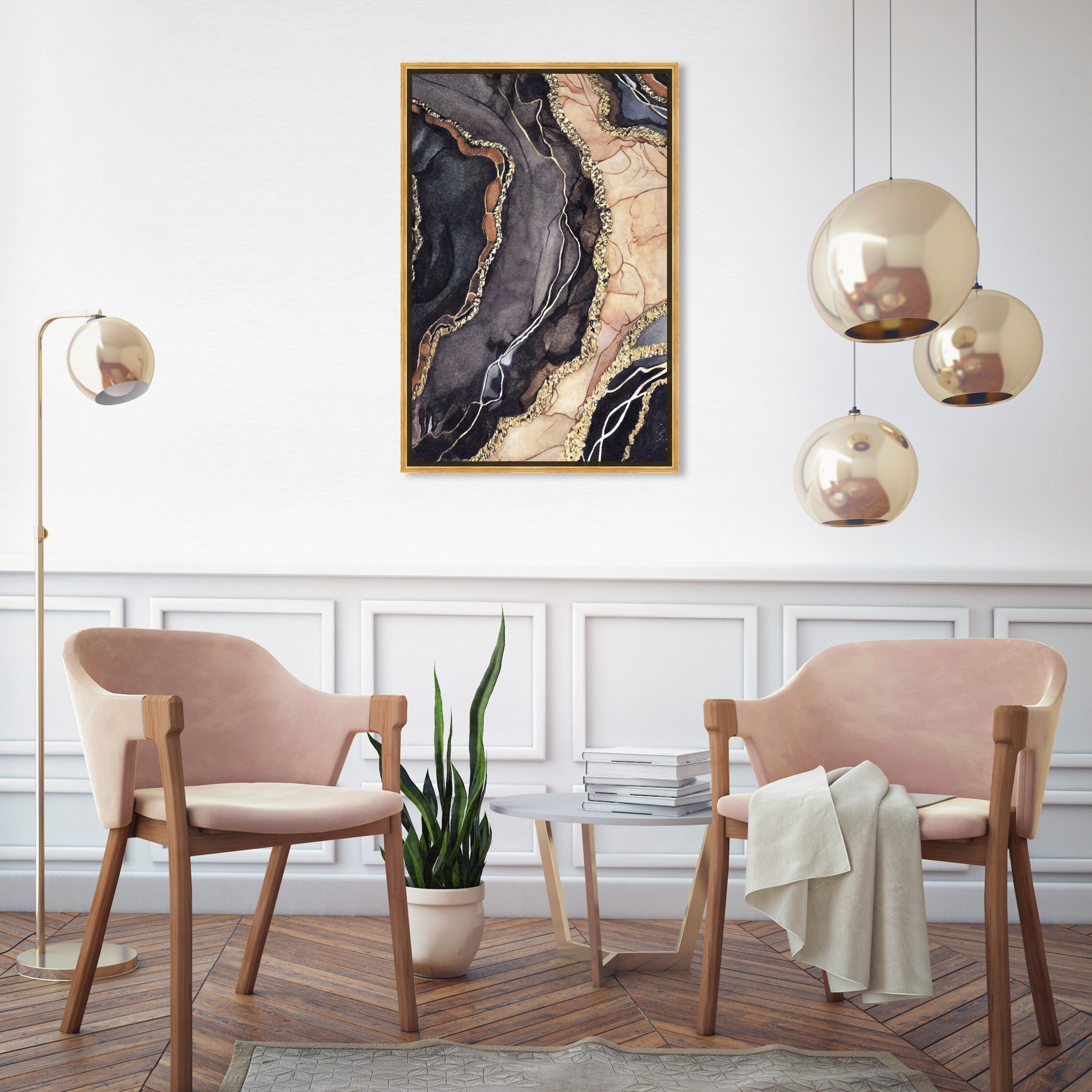 Designart "Dreamy Golden Mountain Iv" Abstract Marble Framed Canvas Art Print