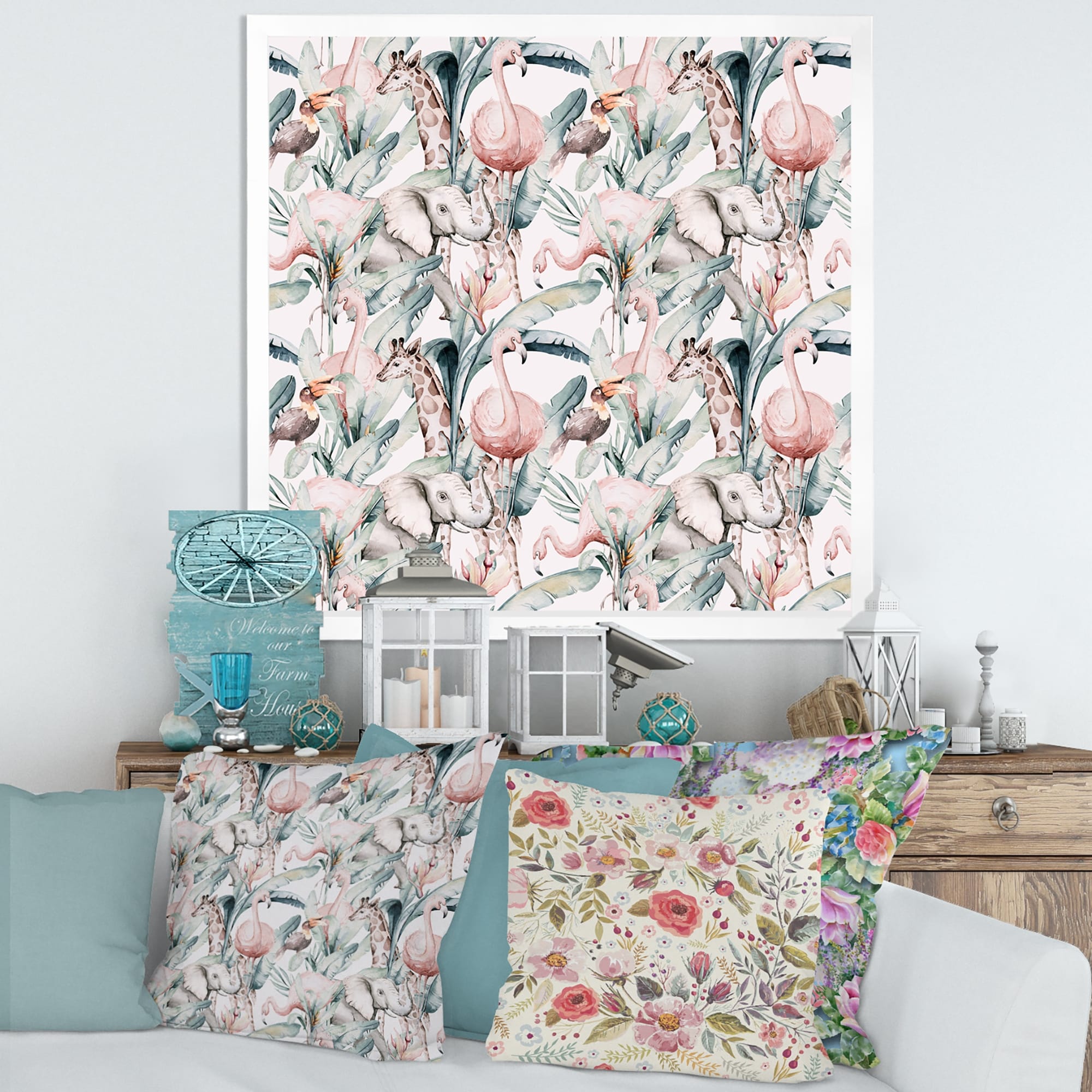 Designart "Pink Flamingo in the Green I" Patterned Framed Art Print