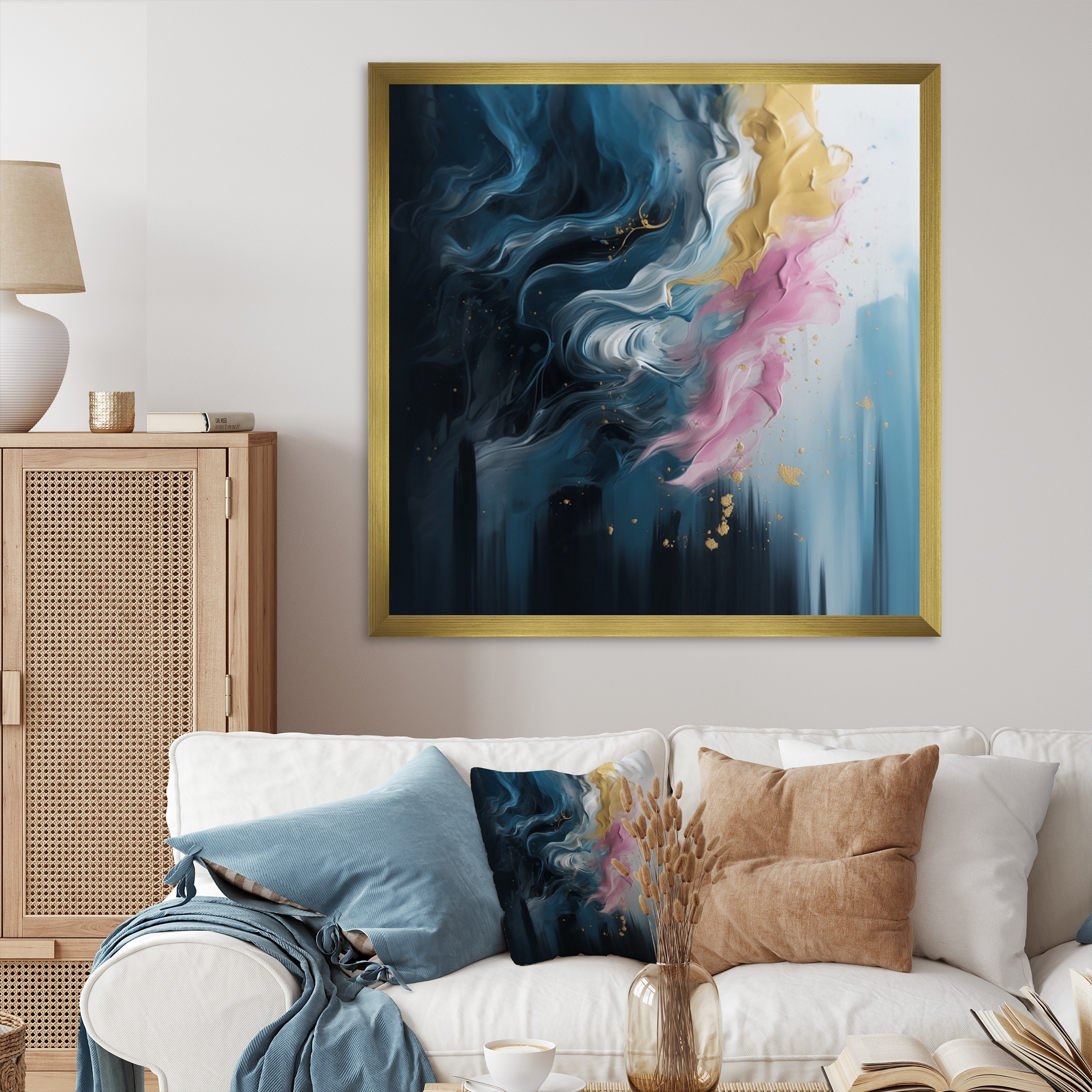 Designart "Pink And Blue Exploring the Unseen I" Modern Geometric Framed Wall Art for Living Room