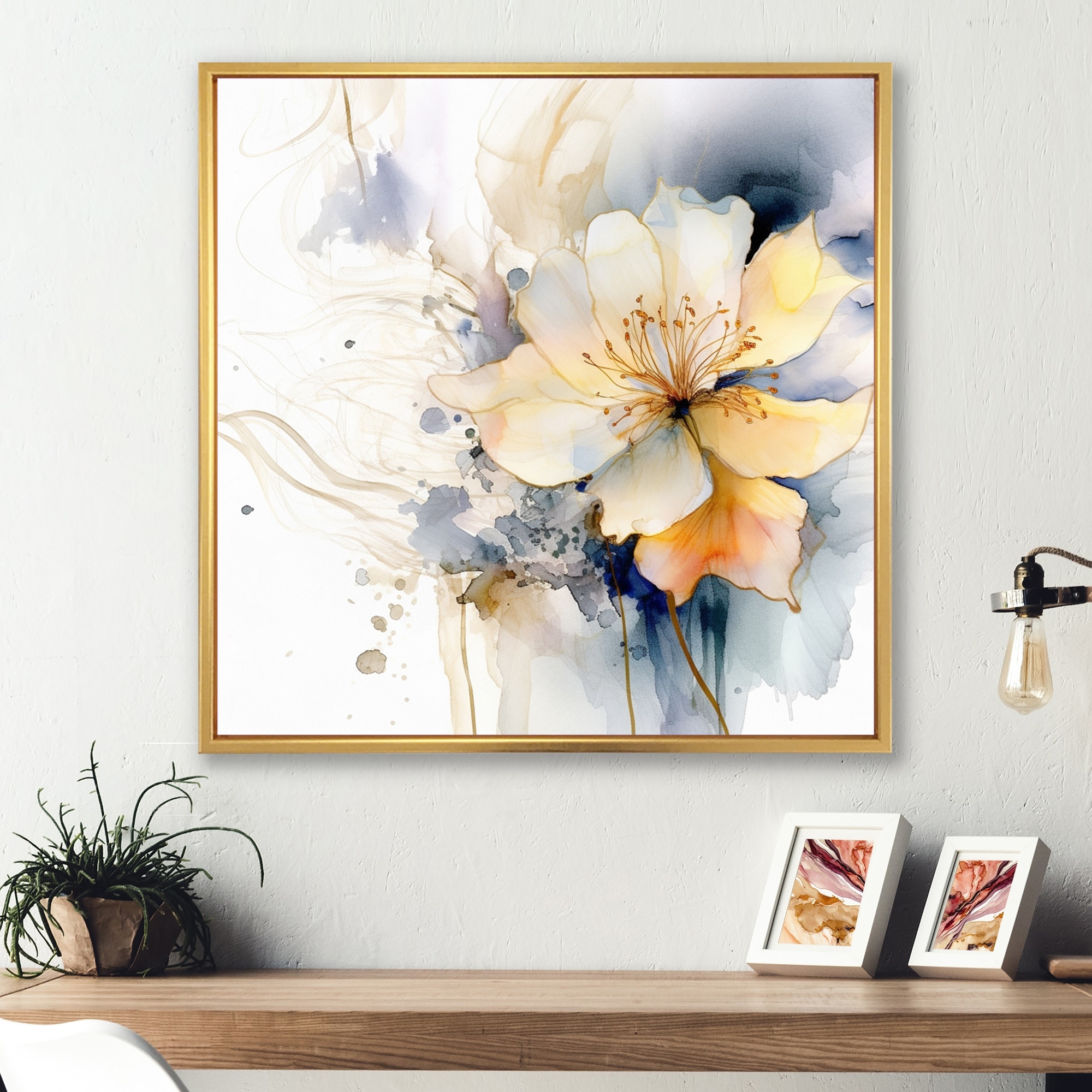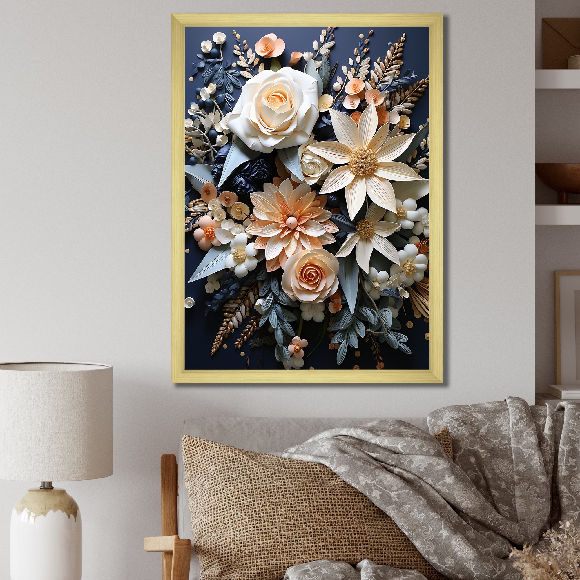 Designart "White Blue Seasonal Flowers Seasonal Elegance IV" Seasonal Flowers Framed Canvas Wall Art
