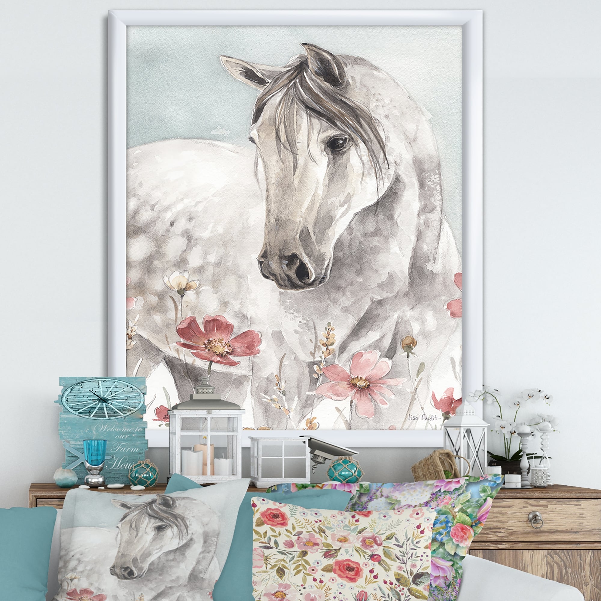 Designart "watercolors Pink Wild Horses II" Farmhouse Premium Framed Art Print